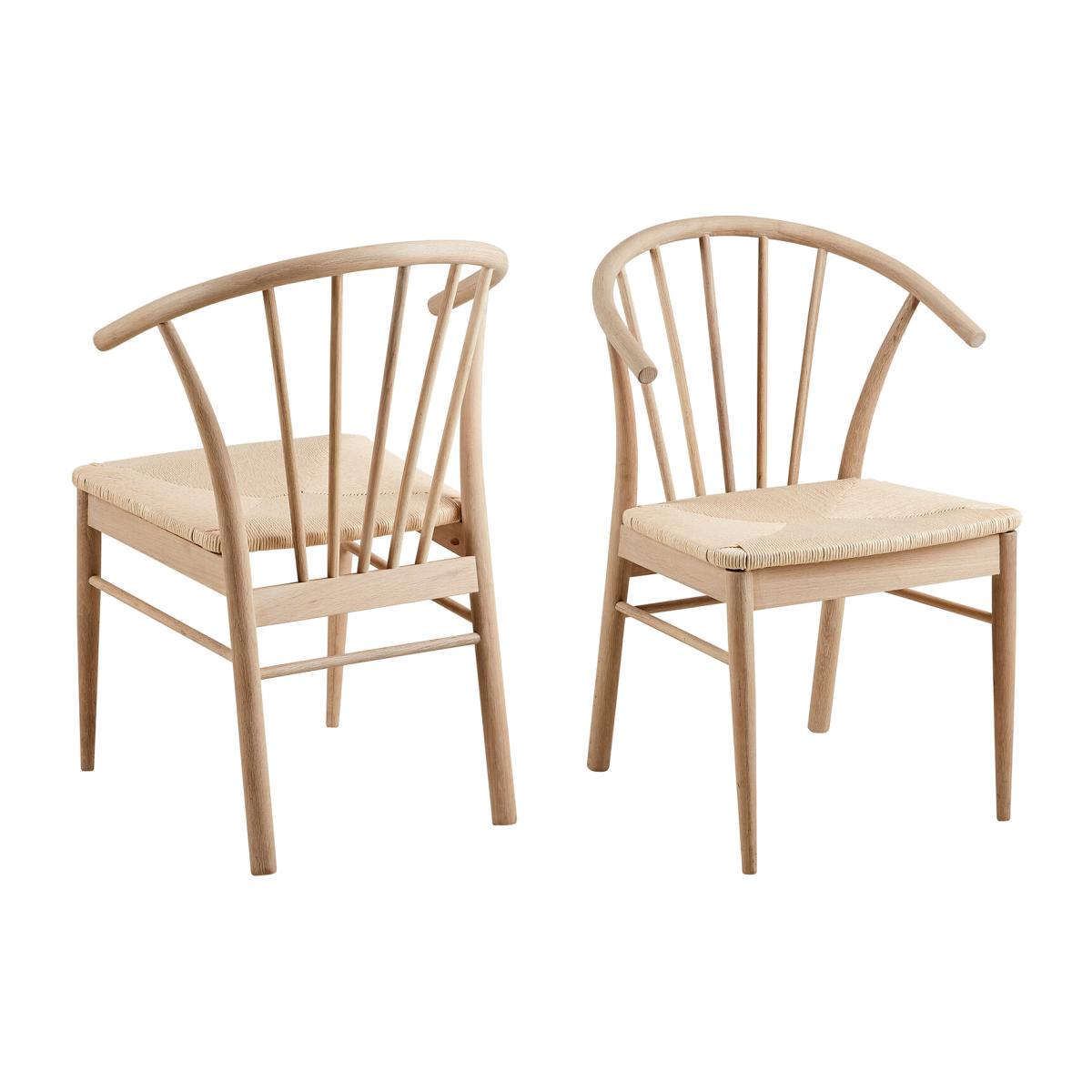 Add a touch of Scandinavian style to your space with the Pair of Cassandra Dining Chairs. Crafted from lacquered oak, this chair features sturdy armrests and a gracefully curved spoked backrest for both support and elegance. The woven paper seat adds texture and comfort, making it ideal for everyday meals or special gatherings. Its minimalist design blends seamlessly into any dining setting, combining practicality with timeless style. Pair it with a matching table from the furniture collection to create a cohesive look in your space.