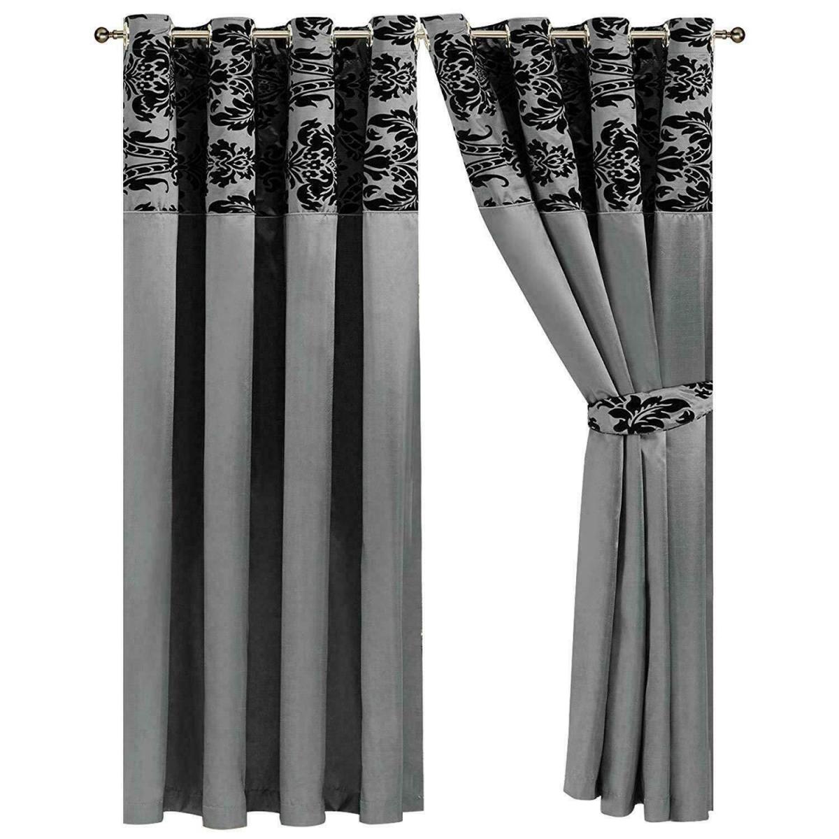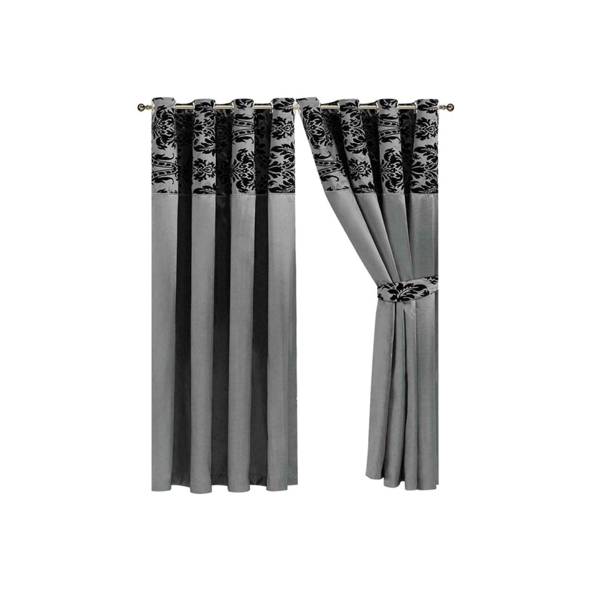 Pair Of Damask Flock Curtains - 90x90 / 90cm