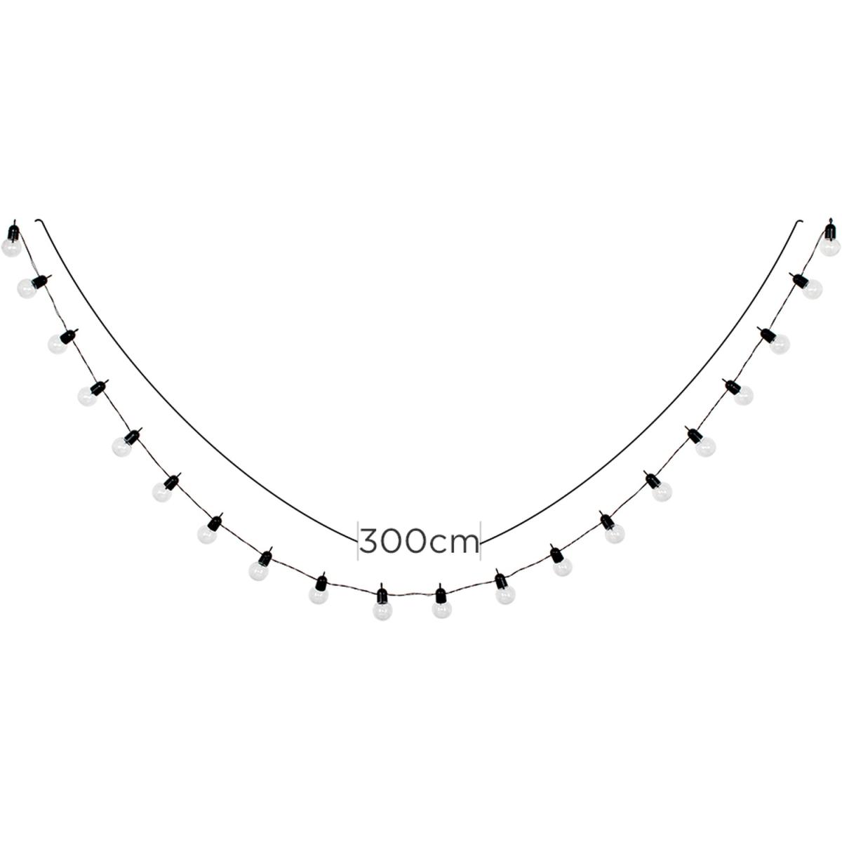20 LED globe string lights which feature a 3m cable making them perfect for decorating any outdoor living space. These lights are also IP44 rated, so can be used safely outdoors - making them perfect for decorating trees, shrubs, gardens and the exterior of the home. Each globe features high quality LEDs with a colour temperature of 2700. K. Comes complete with pre-fitted hanging hooks on each globe, making these lights really easy to display. Please note the LED bulbs inside are non-replaceable.