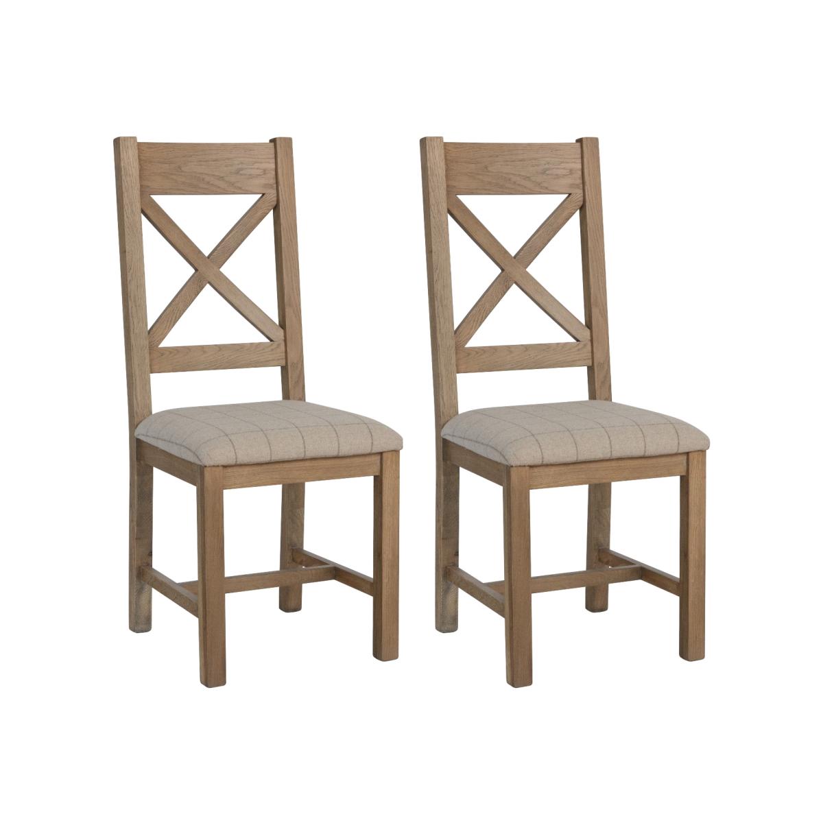 Pair of Dining Chairs with Cream Seat & Cross Back in Smoked Oak