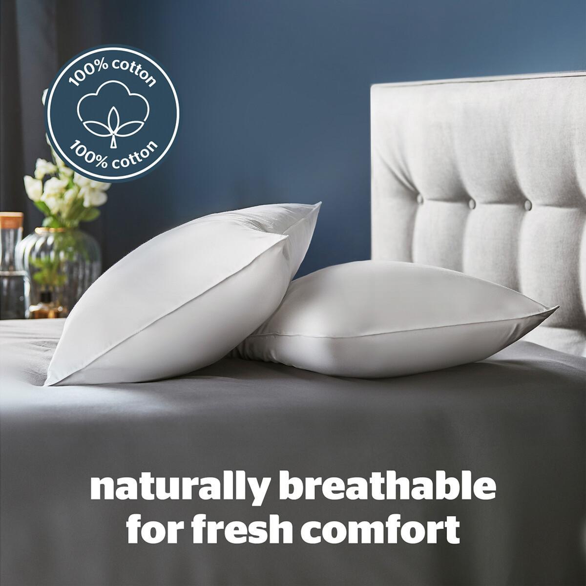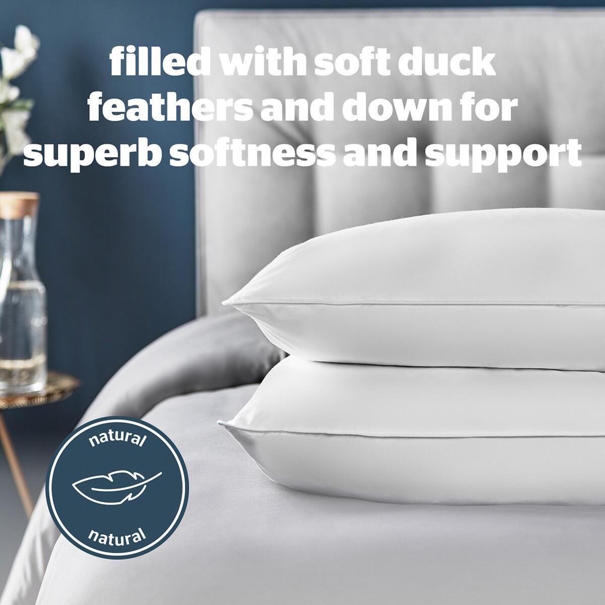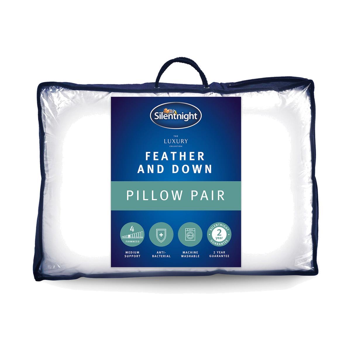Nestle into the naturally luxuriously pillows for ultimate cosy comfort throughout the night. These Silentnight Feather and Down pillows are generously filled with sumptuous duck feathers and down, this combination provides great support for your head and neck whilst still giving you a soft and squidgy pillow. The breathable cotton covers not only provide superior comfort they also contain anti-bacterial properties to protect you from bacteria and dust mites, keeping you fresh whilst you sleep. NATURALLY LUXURIOUS: Deeply filled with soft duck feathers and down, this natural combination offers superb softness for luxurious support. NATURALLY BREATHABLE: The smooth cotton cover and soft filling are naturally breathable for fresh comfort. BACTERIA BUSTING: The pillows are anti-bacterial, protecting you from bacteria and dust mites for a fresh comfortable night’s sleep. MEDIUM SUPPORT: Provides medium support and is suitable for all sleep positions. MACHINE WASHABLE: You can wash your pillows to keep them fresh, fluffy, and clean. GUARANTEE: Comes with a 2 year manufacturer’s guarantee. This product will be dispatched by one of our trusted suppliers. You’ll be contacted by their selected courier about your delivery. Goods must be unused and returned in their original packaging. If sealed for health/hygiene reasons they must also be returned unopened with seals, stickers and tags intact.