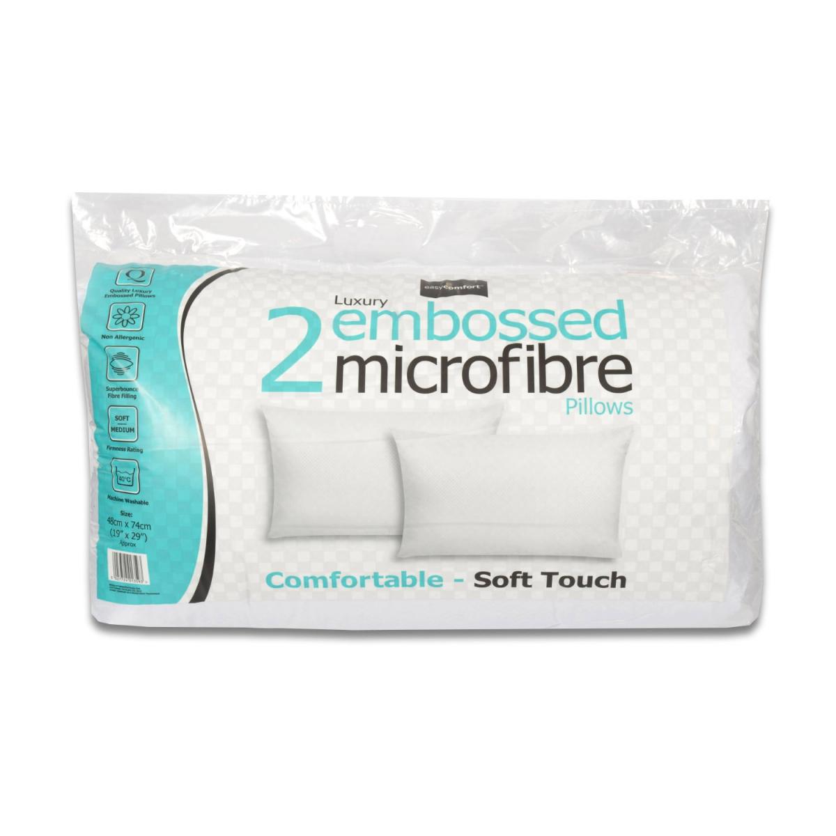 This Pair of Embossed Soft Touch Pillows are non allergenic, for a relaxing and undisturbed rest each night. Their superbounce fibre filling comfortably supports you whilst you sleep and keeps the pillows plump.