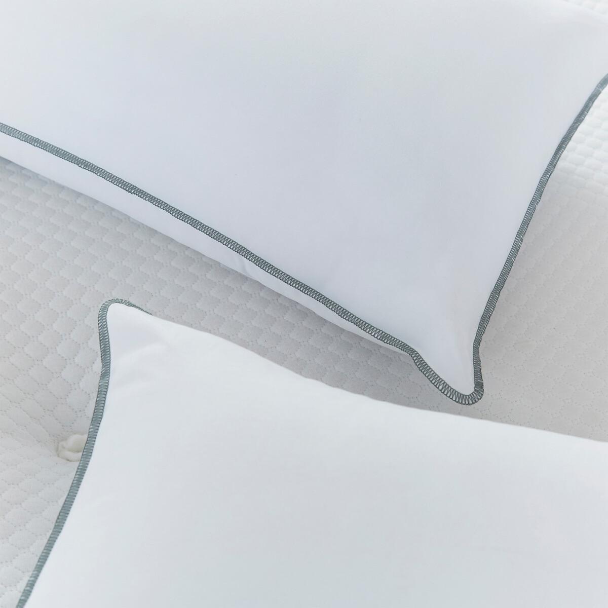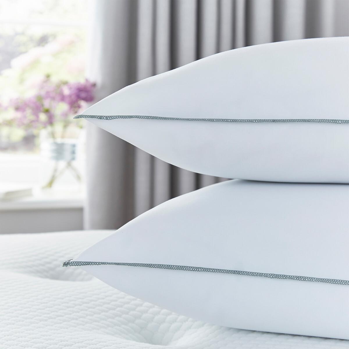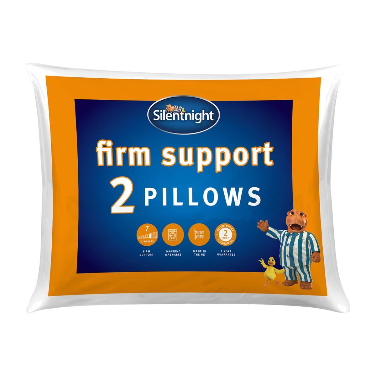 The Firm Support Pillow Pair by Silentnight is simply designed to offer comfort and support. The pillows have a ventilated breathable foam core in the centre surrounded by deep filled bouncy hollowfibre. This results in a plump and supportive pillow that is ideal for people who sleep on their side. The pillows are encased in a mircofibre cover that is both soft and easy to care for and will provide ultimate comfort for a great night’s sleep. The pillows come with a two year manufacturer’s guarantee so you can sleep soundly with your purchase. The pillows are hypoallergenic which means they do not contain any materials that are likely to cause allergies. Suitable for hand washing. At Silentnight we understand the importance of a good night’s sleep and we believe your pillow should be as unique as you. When choosing the right pillow you need to consider your dominant sleep position. For example people who sleep on their front require only a small amount of support from their pillow, so a soft and slim pillow is ideal for front sleepers. Back sleepers need a little more support, so a medium firmness is best suited. Finally, side sleepers require the most support from their pillow to help relieve pressure from the neck. If you sleep on your side you will feel more comfortable with a firmer pillow. Back and side sleepers may need to use more than one pillow to achieve the perfect level of support. 2 Silentnight Firm Support Pillows, standard size L69 x W46 x H15cm. Features a ventilated foam core within the centre of the pillow for breathable support. Provides great support for your head and neck for ultimate comfort while you sleep. The foam core is surrounded by soft and bouncy hollowfibre and encased in a microfibre cover. Firm support, suitable for side sleepers, hypoallergenic and made in the UK. 2 year manufacturer’s guarantee. This product will be dispatched by one of our trusted suppliers. You’ll be contacted by their selected courier about your delivery. Goods must be unused and returned in their original packaging. If sealed for health/hygiene reasons they must also be returned unopened with seals, stickers and tags intact.