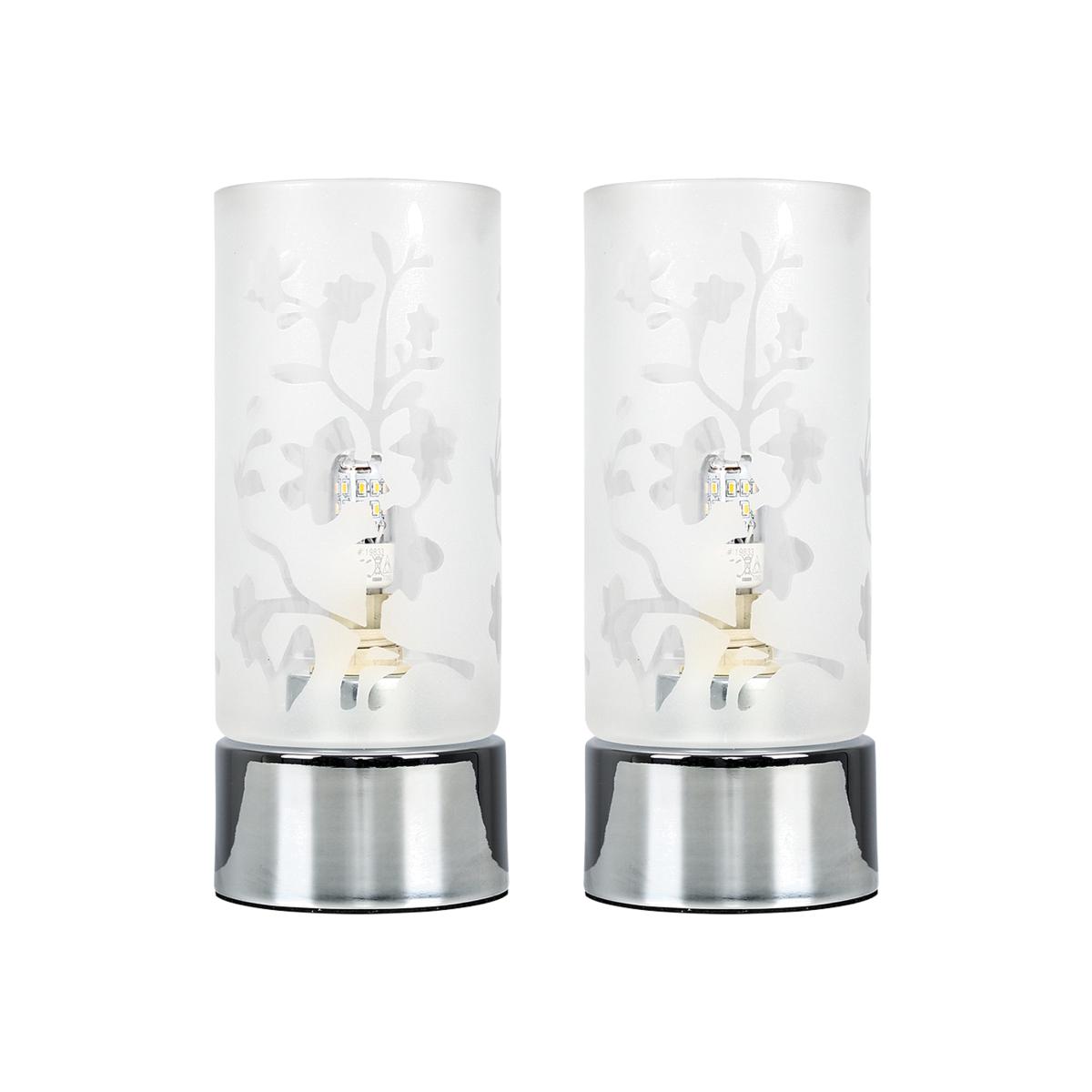 These fantastic floral glass touch table lamps in brilliant polished chrome are a wonderful addition to any contemporary home. The decorated frosted glass shade allows the light to be dispersed throughout the room without the light becoming too harsh. The light can be set to 4 stages, off, a low level light for mood lighting, a medium level light for general lighting and a high level light which is the brightest setting to create an intense pool of light. Table lamps are brilliant as complementary lighting and are perfect to light up dull corners. Please Note This lamp requires dimmable bulbs. Not suitable for standard LED or energy saving bulbs.
