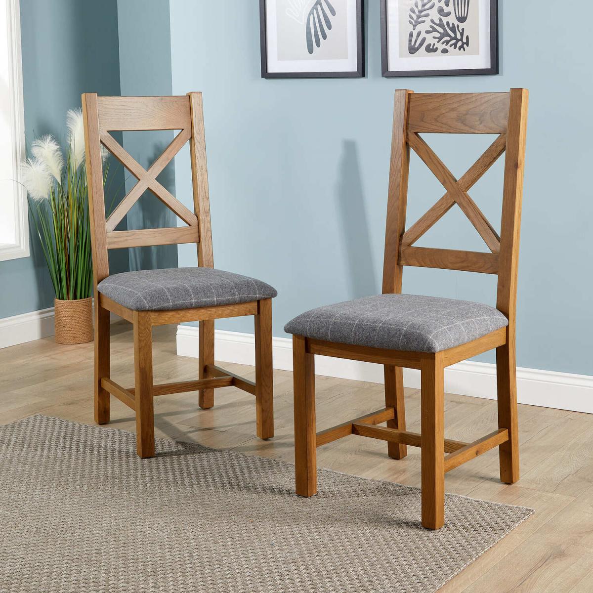 Pair of Holcombe Smoked Oak Dining Chairs Grey Checked Seat Solid Oak Legs - Smoked Oak