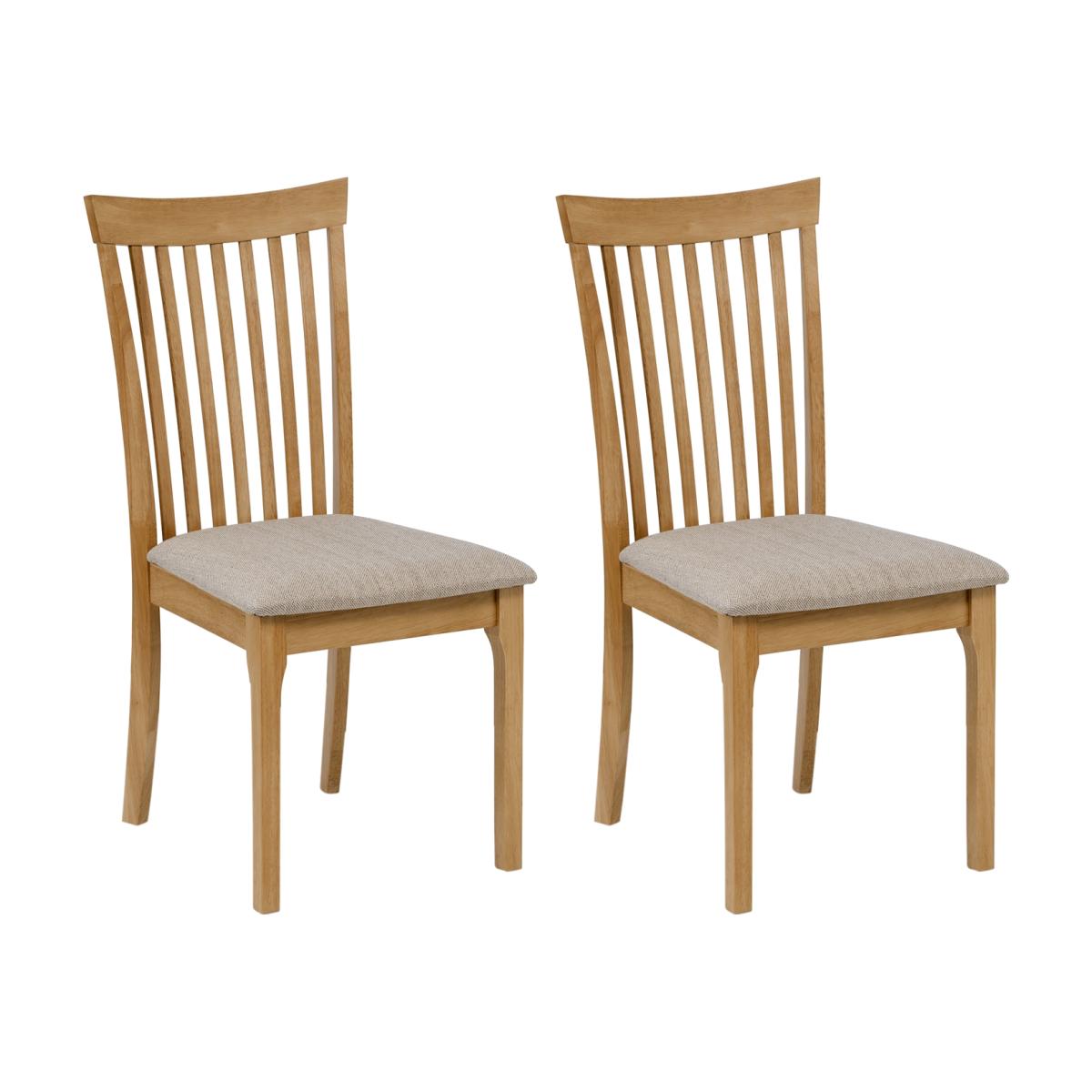 Keep your dining area contemporary and elegant with this Pair of Julian Bowen Ibsen Dining Chairs. Soft and comfortable, the dining chairs boast a cushioning polyester seat material, guaranteed to have you sitting comfortably during meal times. The backrests feature a classy yet understated wooden bar back. Place with a wide range of dining tables to create a rural room where you can enjoy eating lunch with your family or dining with friends.