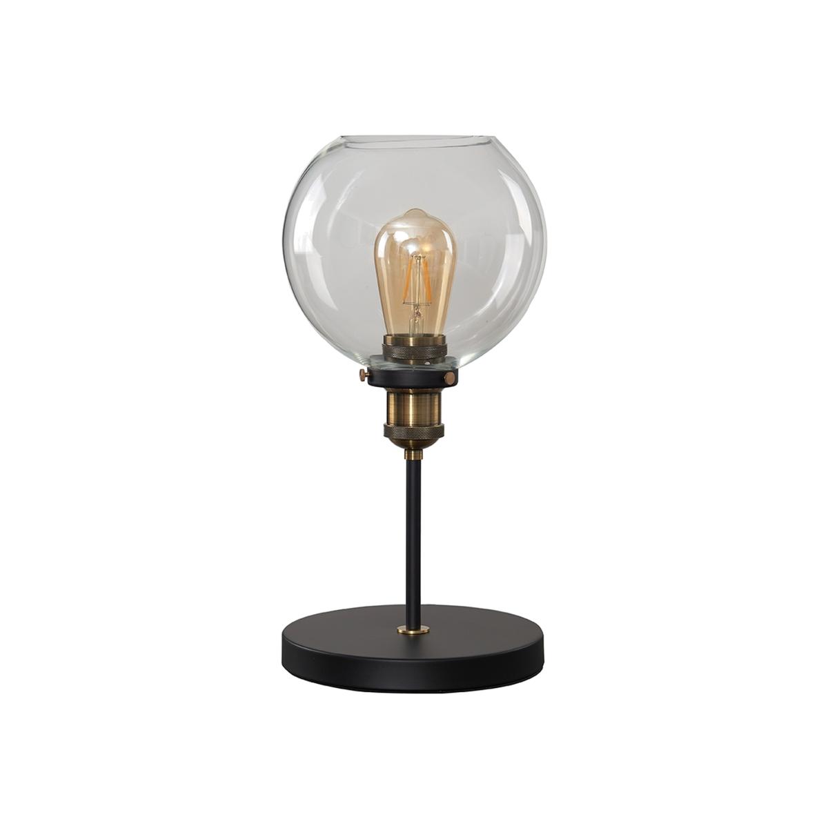 A pair of Industrial style table lamps in a contrasting black and gold effect metal finish, featuring clear glass globe shaped light shades. The transparent open design helps shade the bulb whilst allowing light to disperse effectively and evenly throughout the room. These shades compliments the style of the fitting perfectly and will be a statement piece for any room. Complete with an in-line onoff switch. Ideal for use in hallways, living rooms, bedrooms and other living areas. Table lamps are brilliant as complementary lighting and are perfect to light up dull corners.