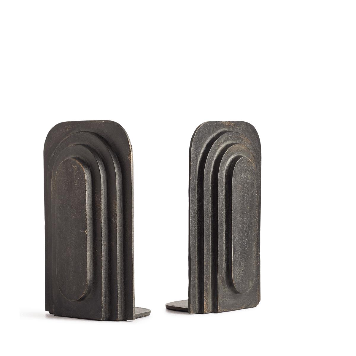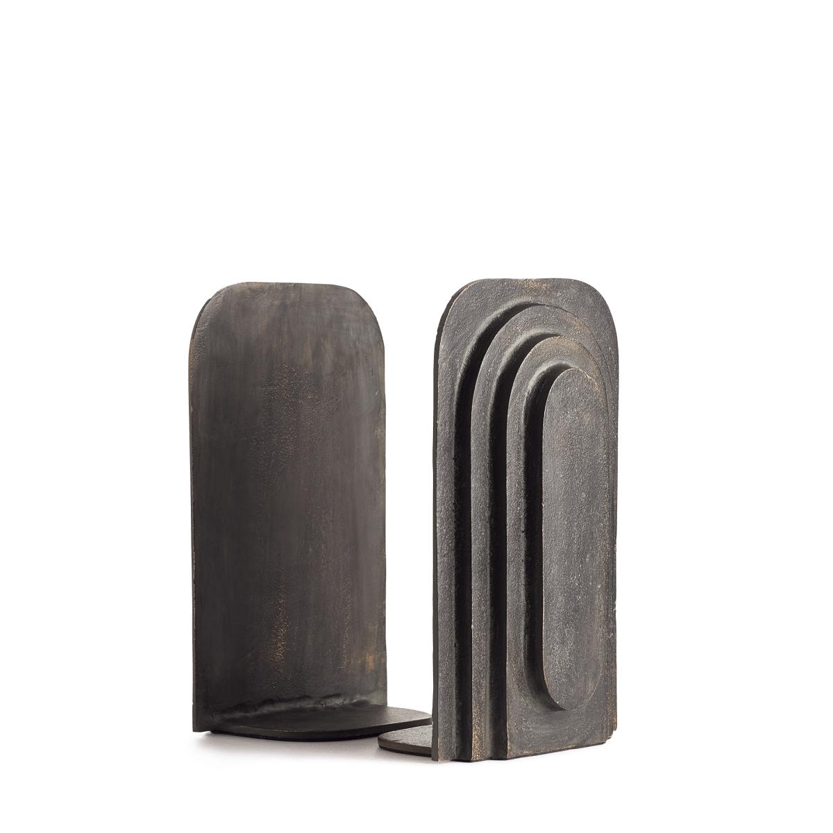 We love incorporating curves into designs at OKA, and our Juke Bookends are testament to that with their concentric arches cast from aluminium. To achieve the metallic black finish, the pieces are first given a matt polish, then sprayed gold, fired and lacquered by hand. This artisanal process results in each piece having individual characteristics.