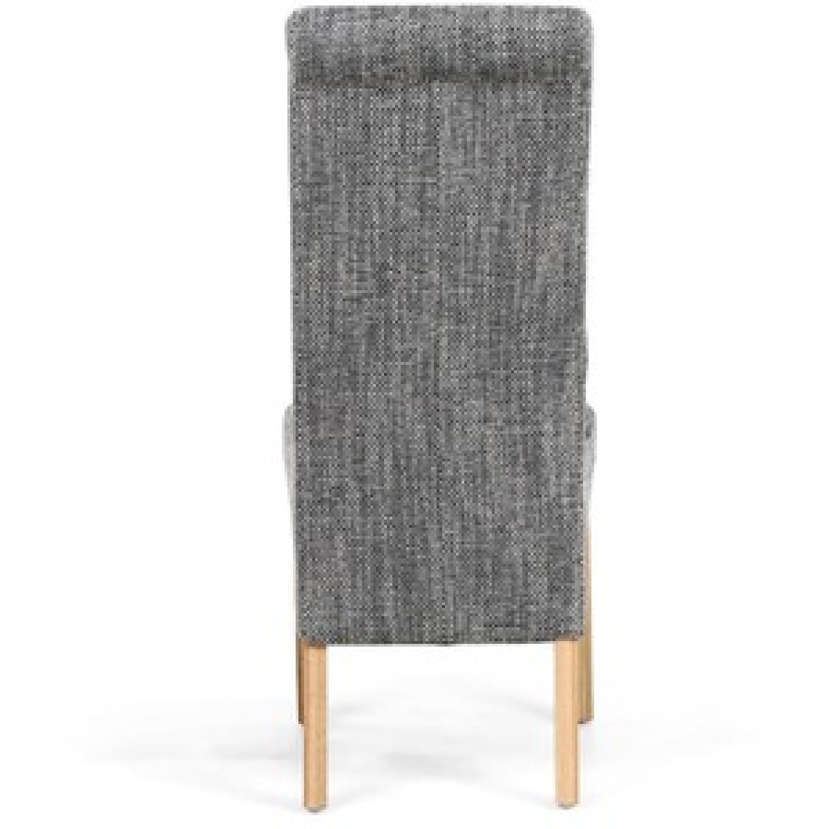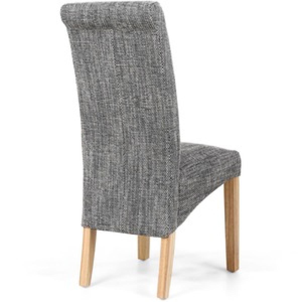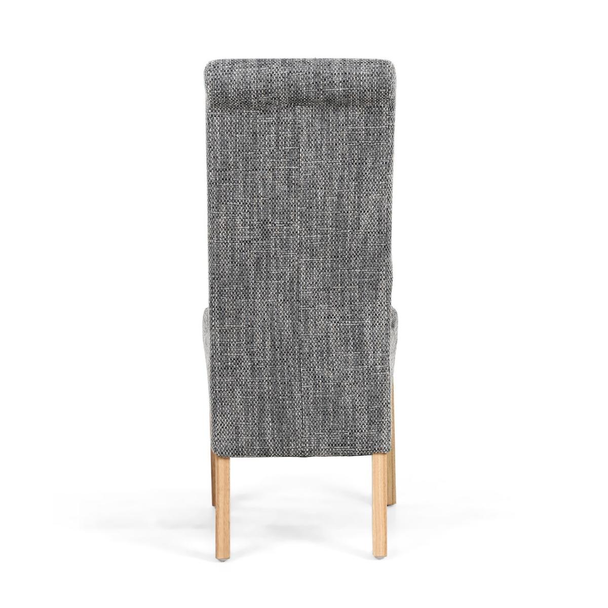 Pair Of Karta Scroll Back Tweed Grey Dining Chair