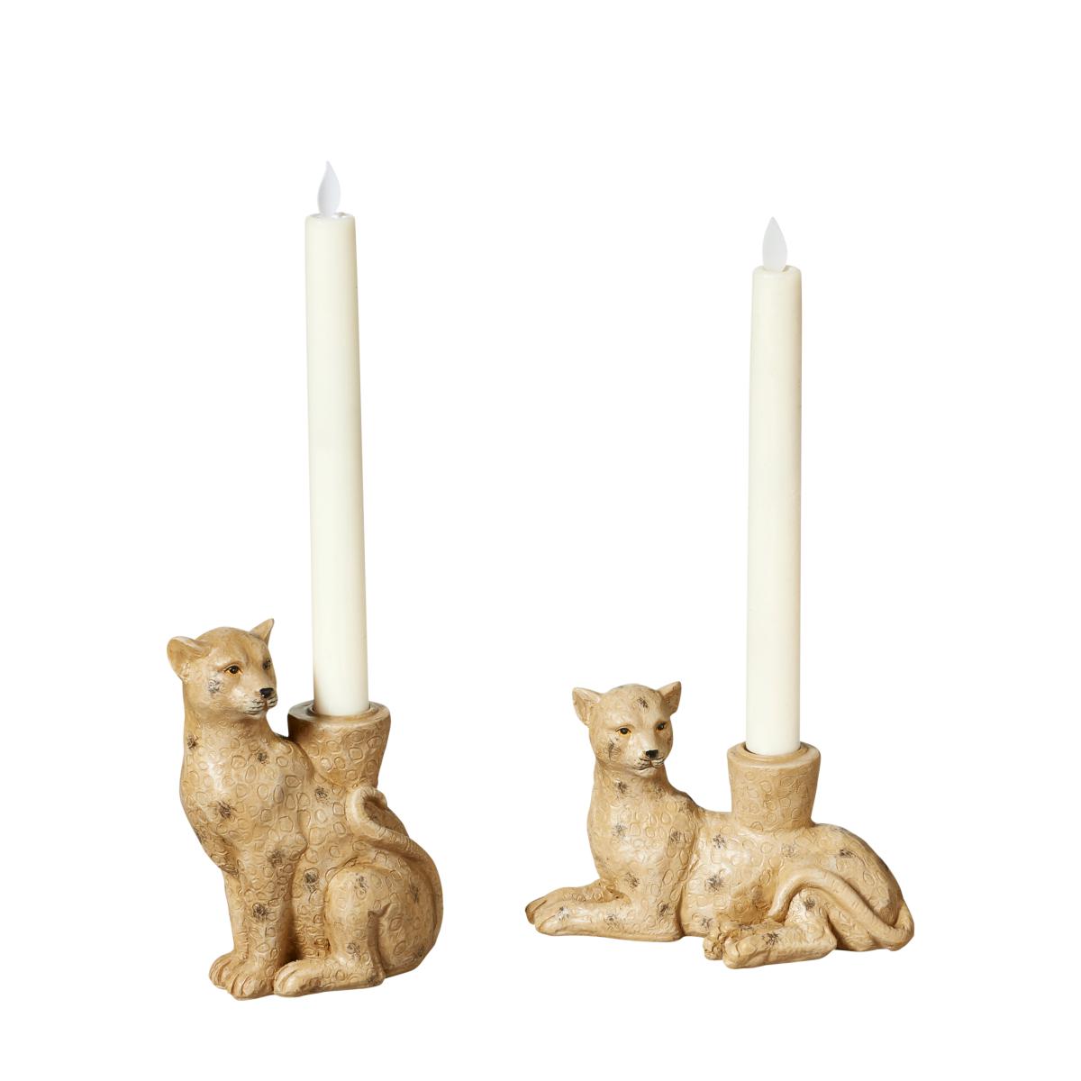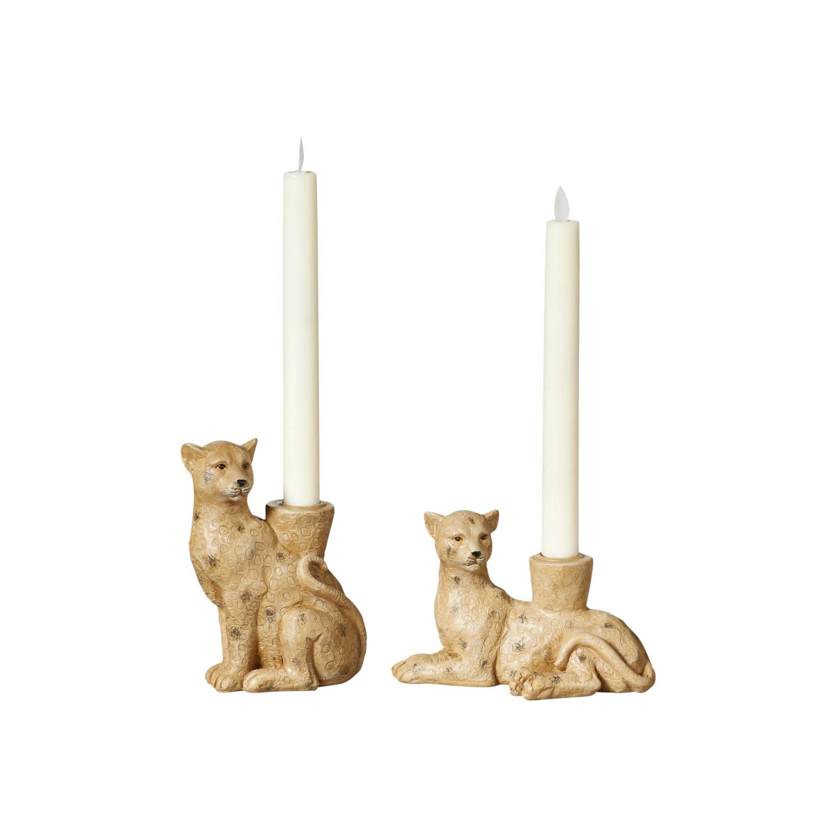 Pair of Lakadema Lounging Leopard Candle Holders - Multi