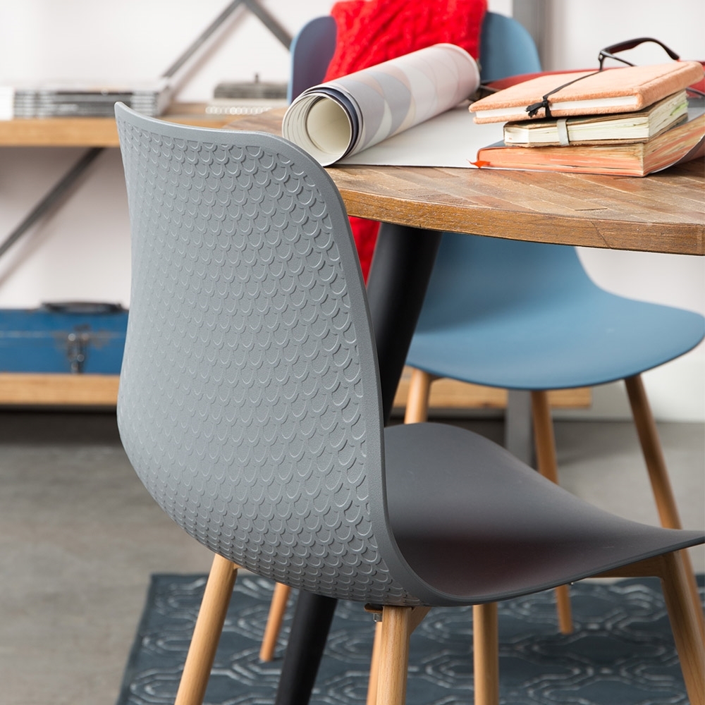 Sitting down has never looked this good! Add a Pair of Leon Dining Chairs to your breakfast table and enjoy your morning coffee in style! Made from Polypropylene, the iron legs with wood transfer foil have been paired with a detailed scale pattern creating a unique and contemporary piece of furniture design. Featuring a moulded seat and chair back, the Leon dining chairs aren't just stylish, they're comfortable too! With four colours to choose from, white, grey, blue and green, combine all styles to create a striking arrangement in your home. Not just for the kitchen and dining room, why not add a touch of sophistication to your office space? Complete your set and see more from our gorgeous furniture collection here at Cuckooland!
