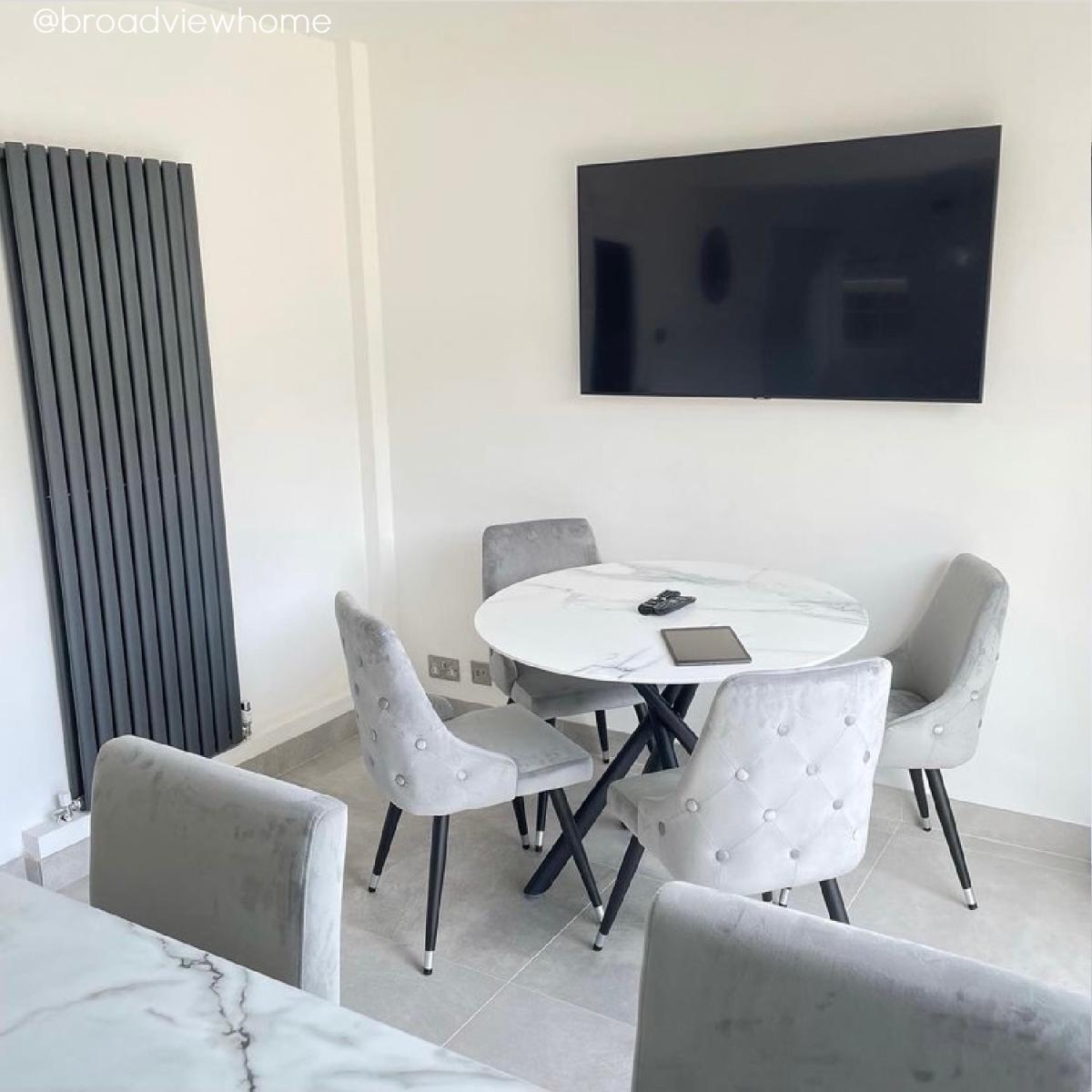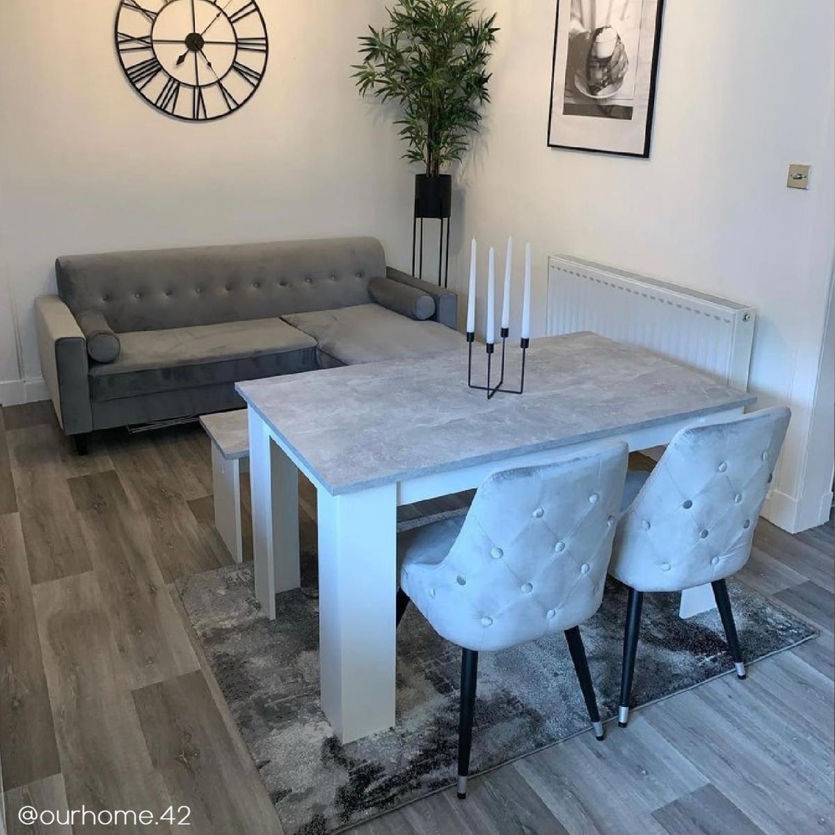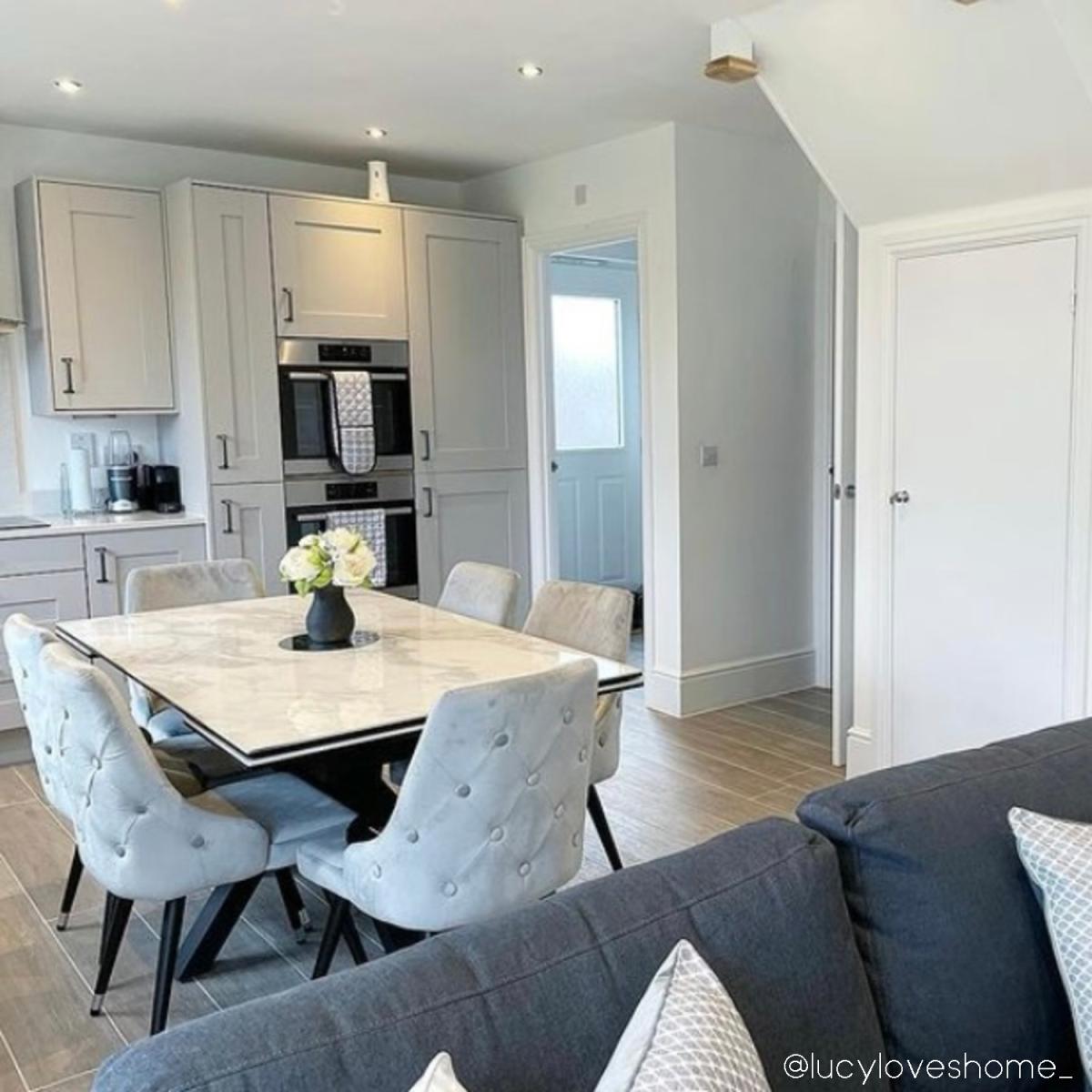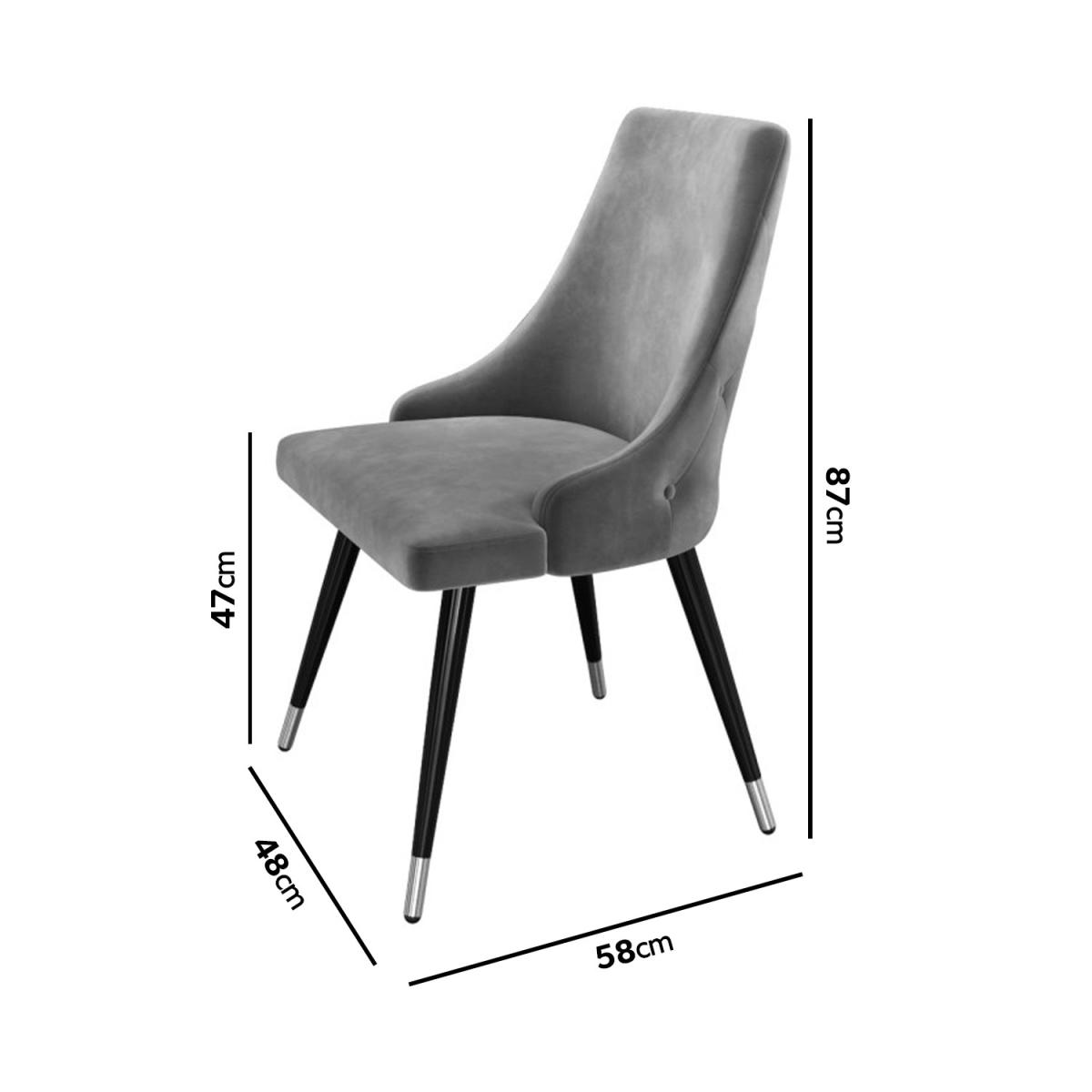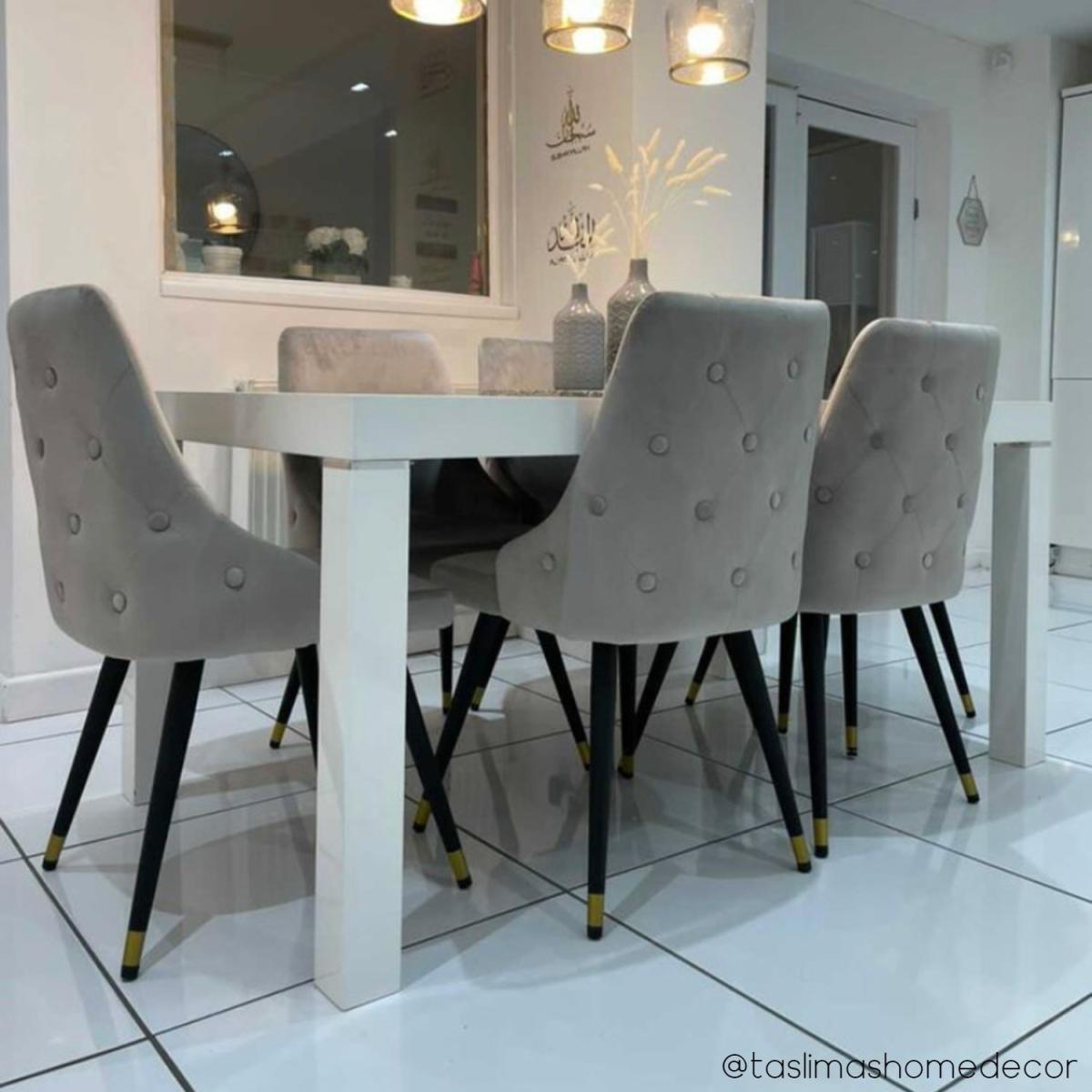 I love these grey velvet dining chairs because they add a touch of sophistication while remaining versatile enough to fit into various interior styles. The button back detail offers a subtle vintage vibe, balancing modern elegance with a cosy feel. They work well in contemporary, mid-century, or eclectic dining spaces, especially when paired with wooden or metal tables. For styling tips, consider mixing them with colourful or patterned tableware to create visual interest, or anchor them with a textured or patterned rug underneath. These chairs are also practical; the velvet finish brings a plush feel but is relatively easy to clean with proper maintenance, making them suitable for everyday dining or more formal gatherings.