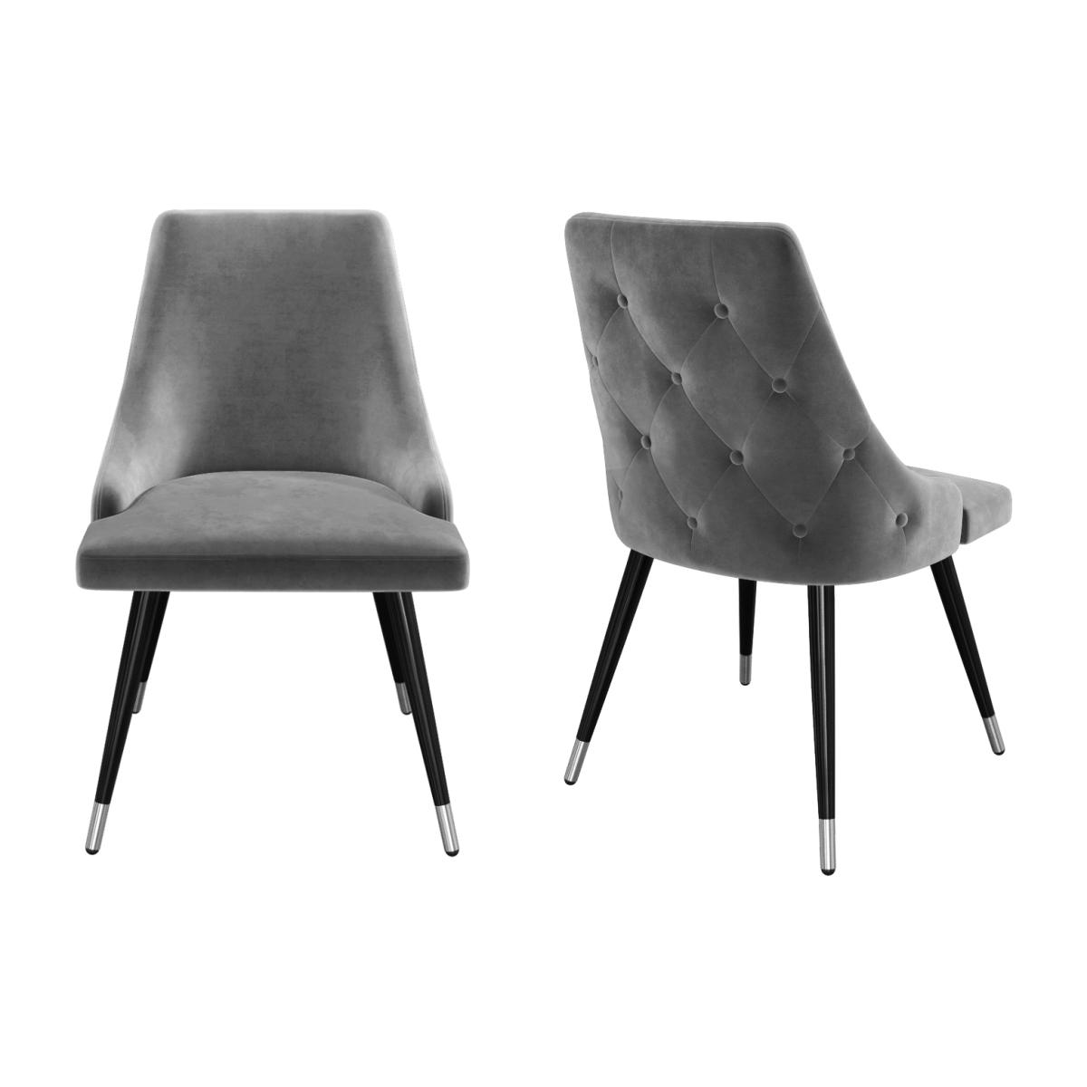 Pair of Light Grey Velvet Dining Chairs with Button Back - Maddy