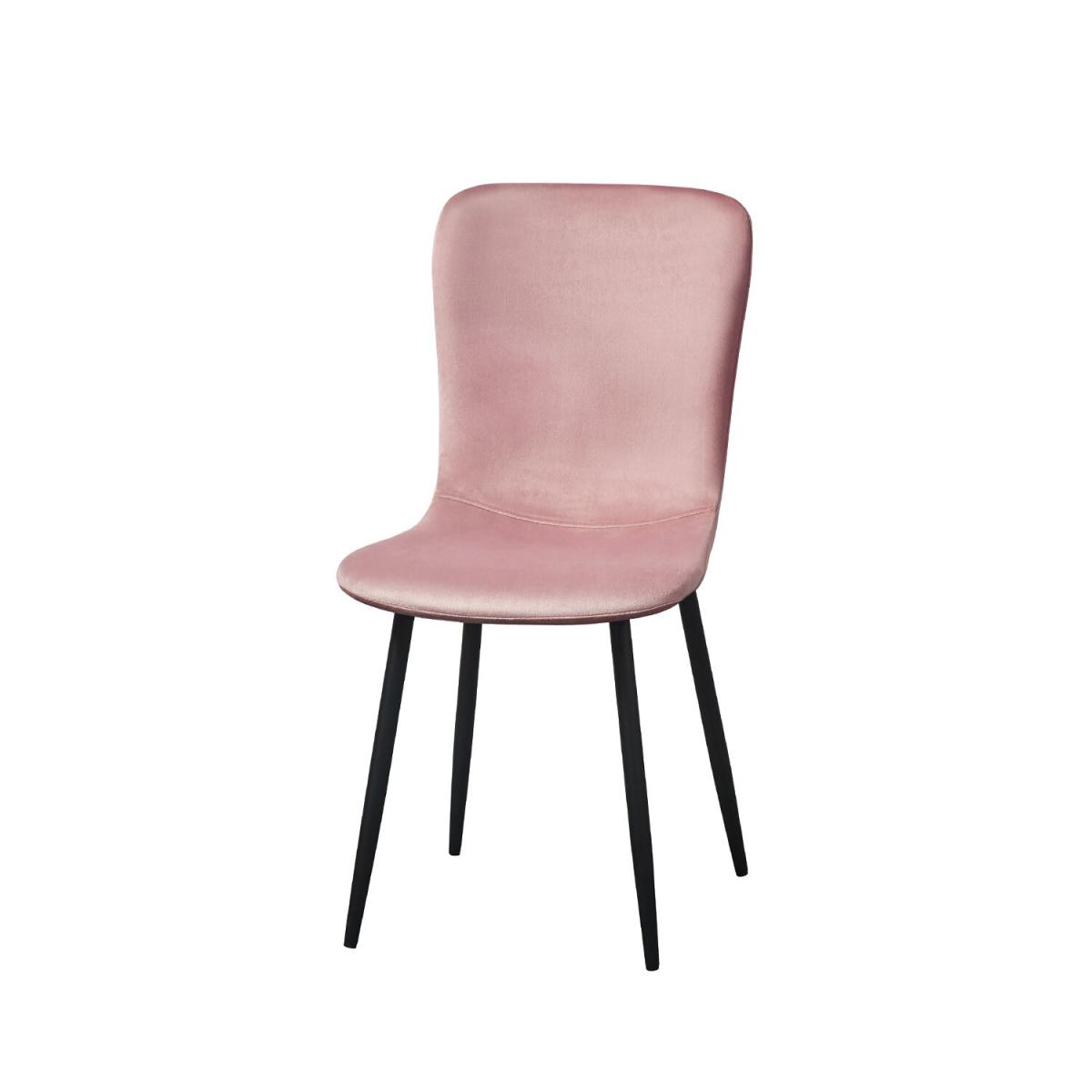I’m a fan of these blush dining chairs for the way their soft pink upholstery brings warmth without overwhelming a space, and the slim black legs keep the look light and contemporary. They slot easily into Scandi-inspired schemes alongside pale timber tables, but equally complement a moody, industrial palette when paired with darker surfaces. For styling, balance the blush tone by introducing small accents elsewhere - think a dusty-pink cushion or a ceramic vase on your sideboard. In tighter layouts, choose a round table to improve flow, and layer in neutral rugs or soft textiles to ground the chairs without competing for attention.