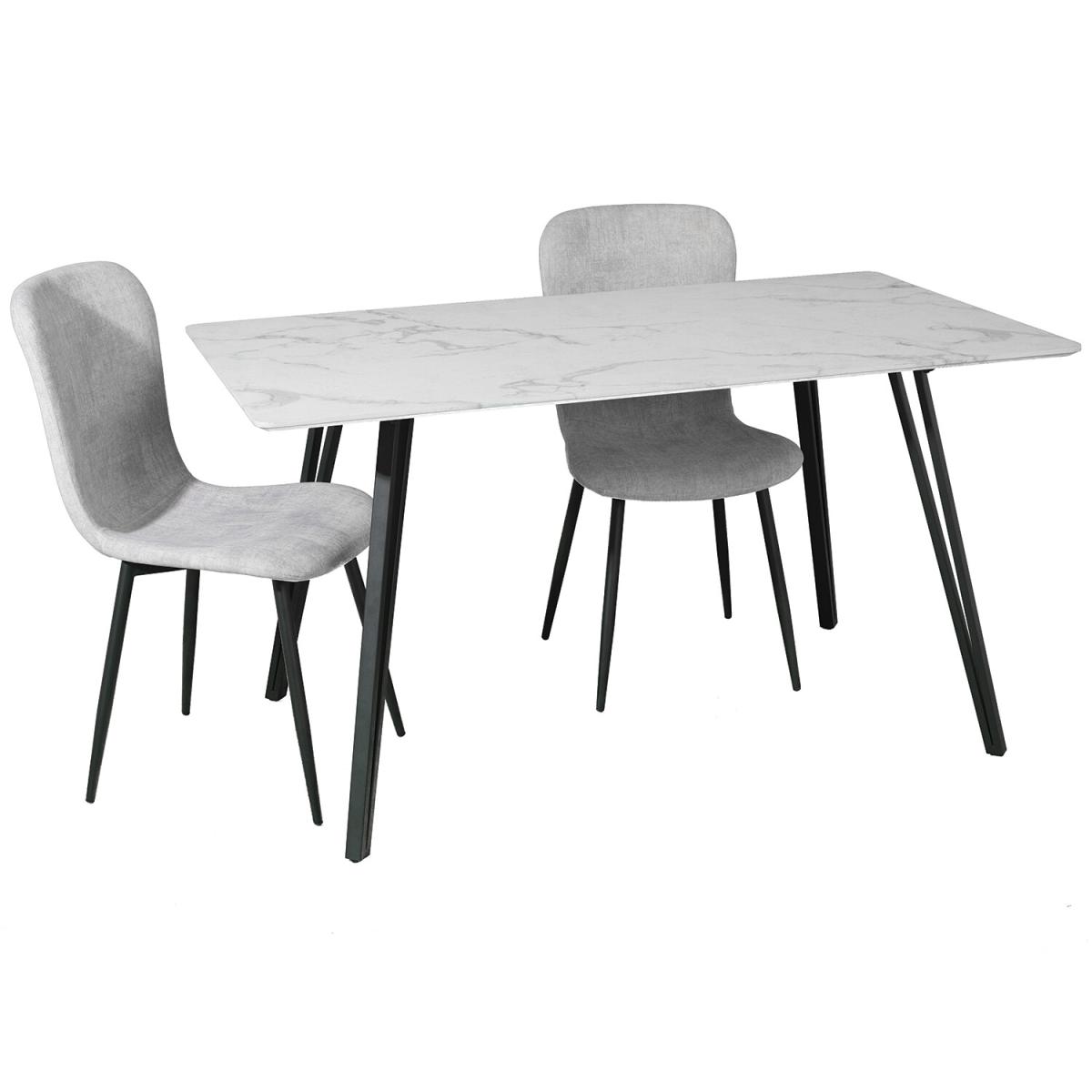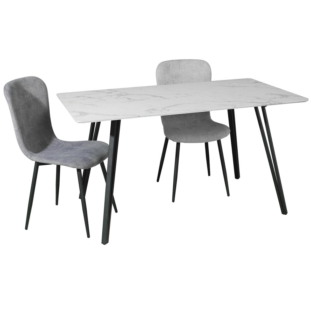 The perfect accompanying seats to the Mia dining table, this Pair of Mia Dining Chairs are constructed with black metal legs and upholstered in soft velvet for a minimalist appearance. Padded with foam for comfort, these stylish chairs will lend themselves to any contemporary kitchen or dining room and offer the perfect resting place while you eat your meals, work, or play.