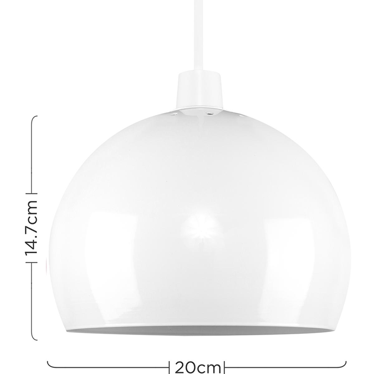 Pair of retro style ceiling pendant light shades in gloss white metal finish. Easily fits to your standard light socket in a matter of seconds - no electrical installationwiring required. Ceiling lights are usually the main source of illuminating a room but with the many styles on offer today, also become a main focal point or talking point. The right fitting can make a real style statement and complete your living space look.