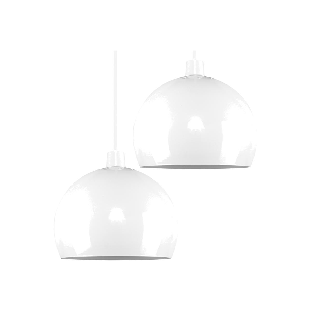 Pair Of Mini Retro Gloss White Arco Style Dome Ceiling Pendant Light Shades - White
