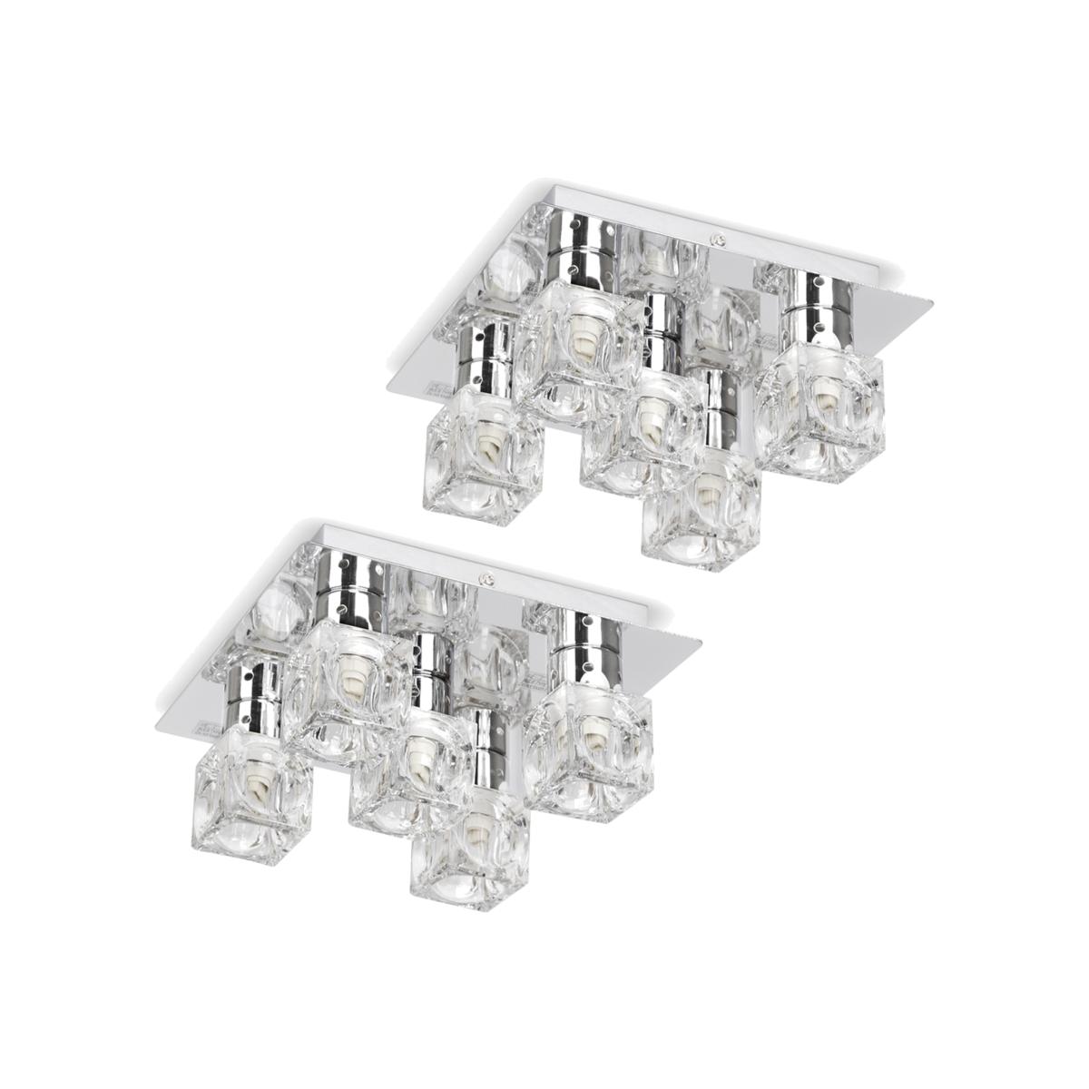 Pair Of Modern Chrome Ice Cube 5 Way Flush Ceiling Lights - Silver