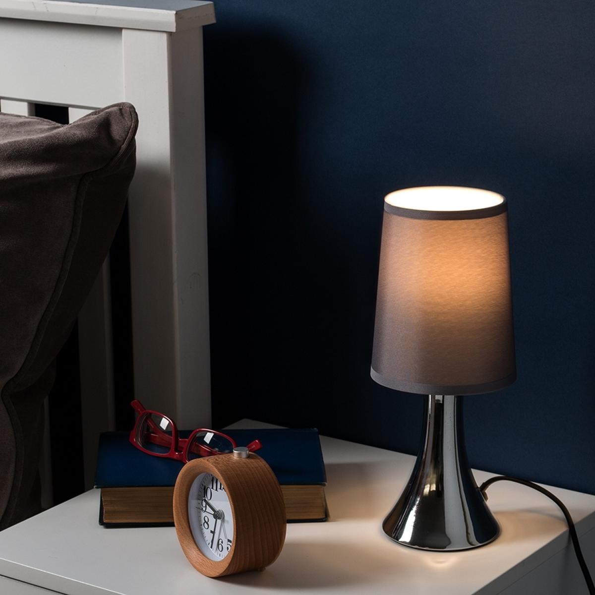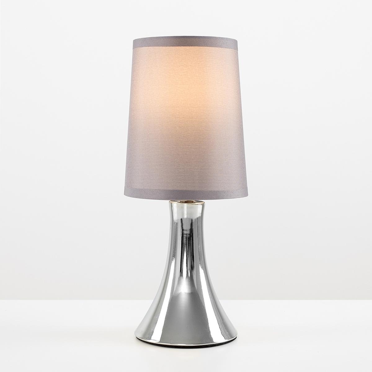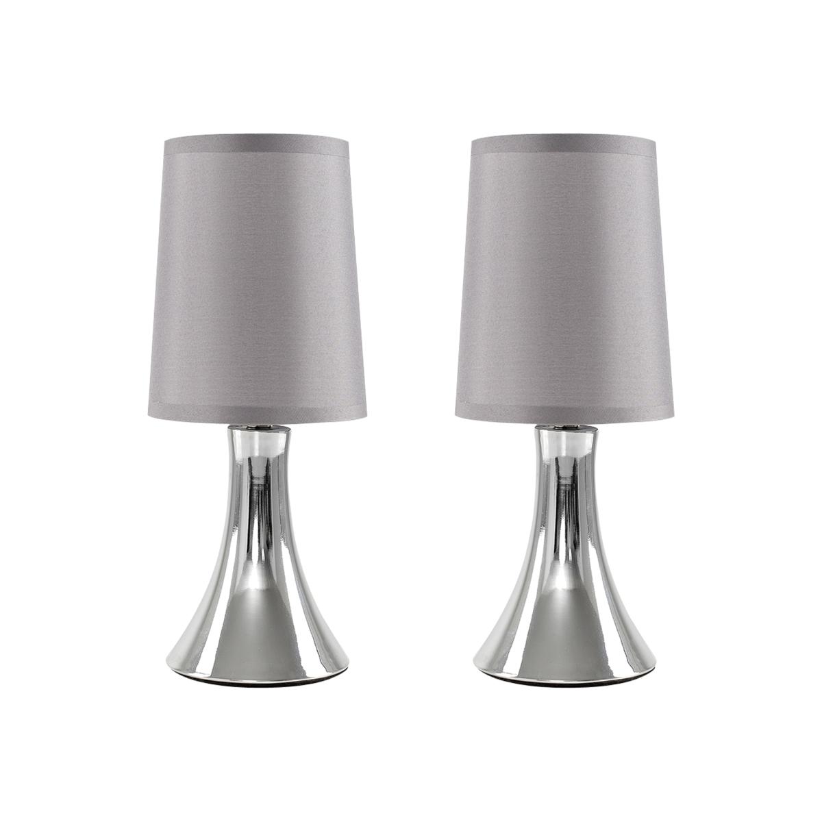 These fantastic touch table lamps with a curved polished chrome base are a wonderful addition to any contemporary home. The grey fabric shade allows the light to be dispersed evenly throughout the room. Simply touch the metal base to turn it on. The light can be set to 4 stages, off, a low level light for mood lighting, a medium level light for general lighting and a high level light which is the brightest setting to create an intense pool of light. Table lamps are brilliant as complementary lighting and are perfect to light up dull corners. Please Note This lamp requires dimmable bulbs. Not suitable for standard LED or energy saving bulbs.