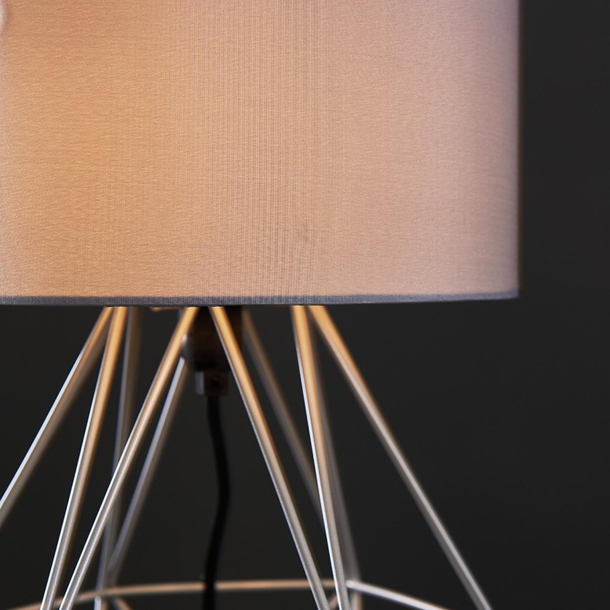 Pair Of Modern Grey Metal Basket Cage Style Table Lamps With Grey Fabric Shade - Grey