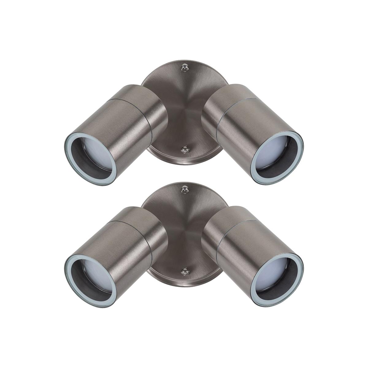 Pair Of Modern IP44 Rated Stainless Steel Outdoor Garden Twin Wall Spotlights - Silver