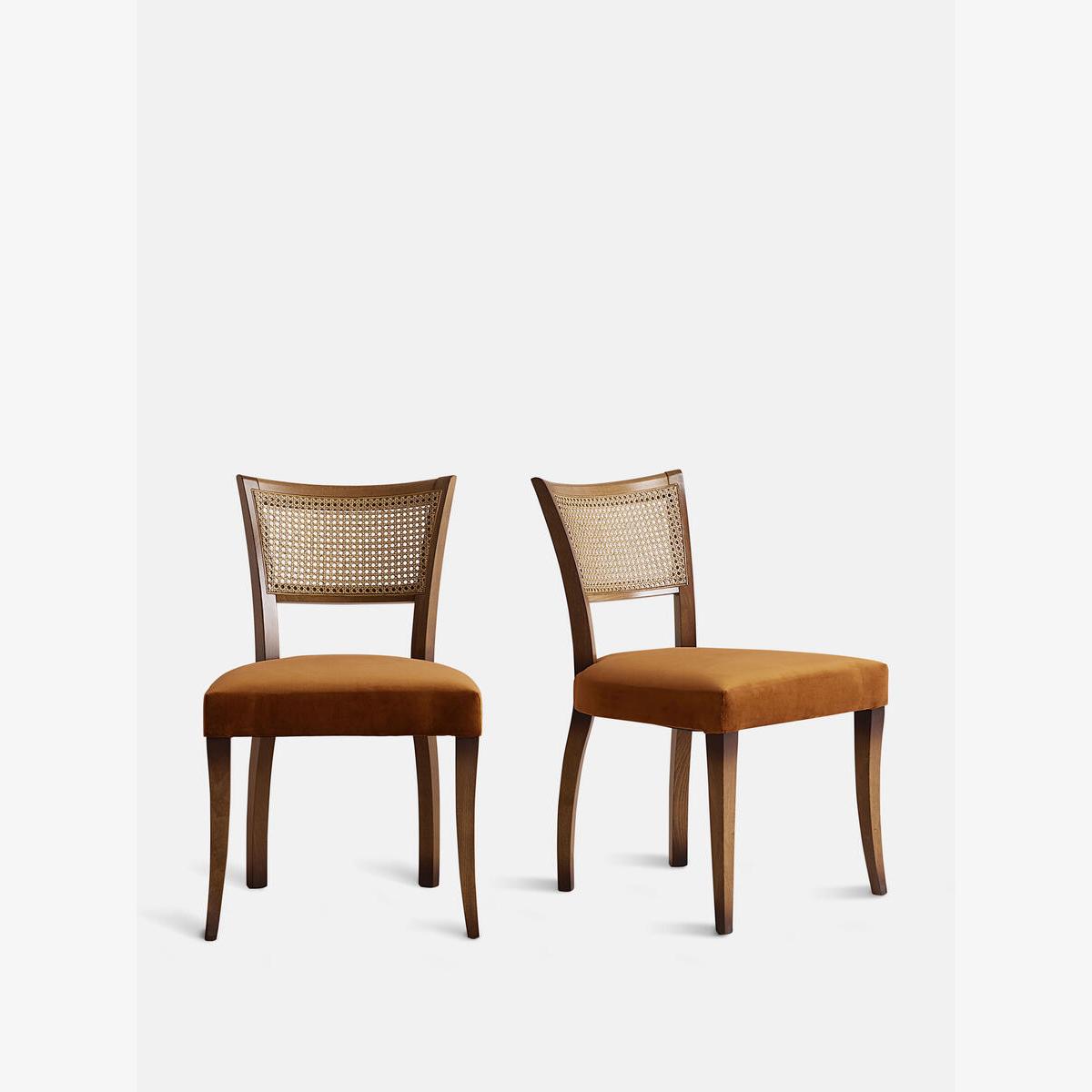 Pair of Molina Dining Chairs, Cane Back, Velvet, Mustard
