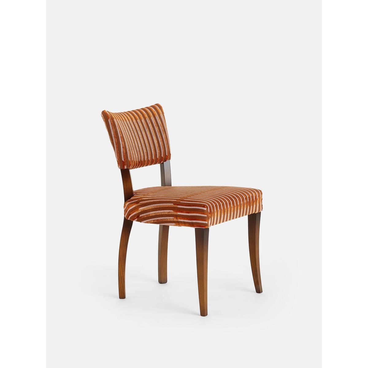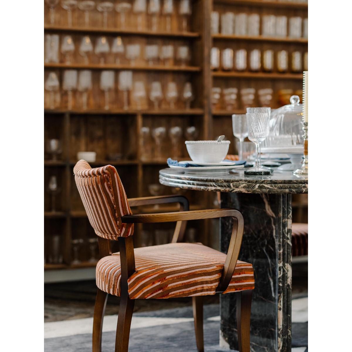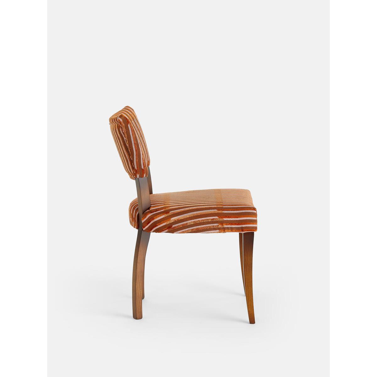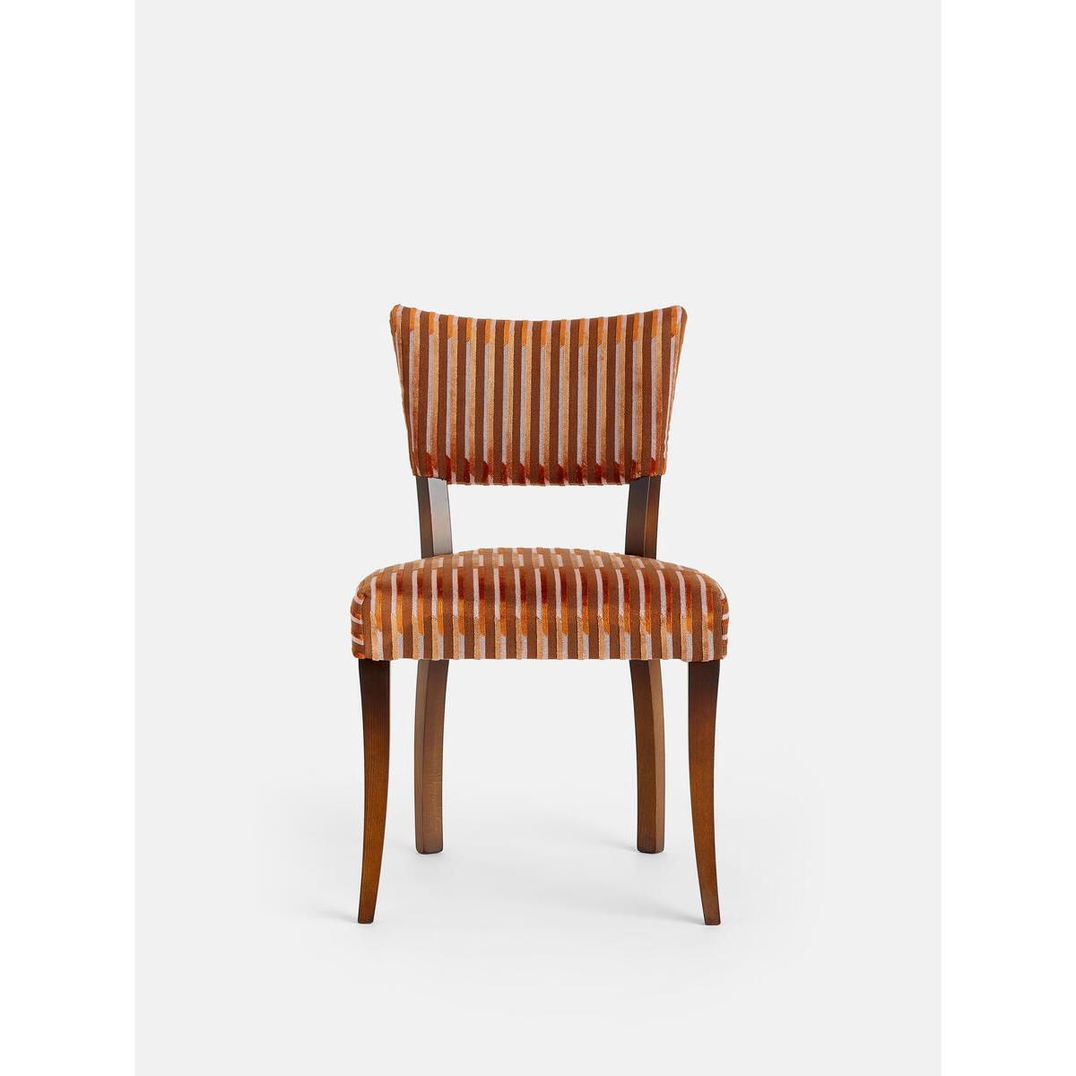 Our Molina dining chairs can be found in many of our Houses, including High Road House and Soho House Berlin, as well as a vintage version in Kettner's Townhouse. The chairs are crafted in Italy and upholstered in Pierre Frey's Velvet Lines fabric, a chiselled velvet with alternating matte and shiny effects. Pair of dining chairs with velvet backs Beech wood frame Upholstered in Pierre Frey's Velvet Lines fabric Fabric develops a natural patina over time Inspired by the vintage dining chairs at Kettner's Townhouse