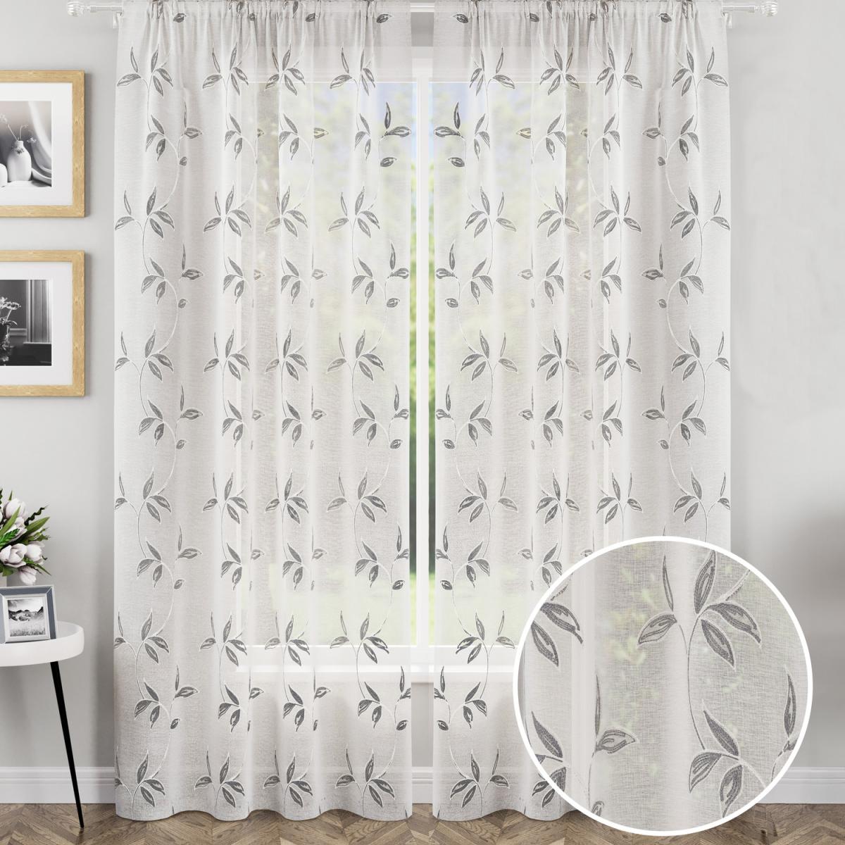 Oasis is a sheer voile panel with an all-over embroidered leaf pattern. The rod pocket header offers ease of hanging, making the panel perfect for any room. Available in two colours grey, natural.