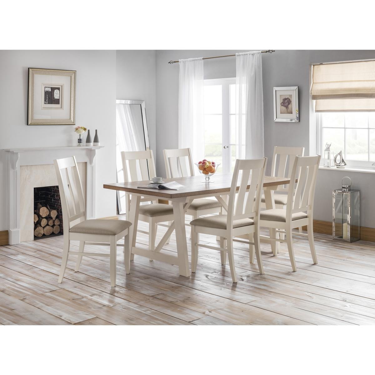 Keep your dining area contemporary and elegant with this Pair of Julian Bowen Pembroke Chairs. Soft and supportive, the dining chairs boast a plump polyester filled seat, guaranteed to have you sitting comfortably during meal times. The backrests feature a classy yet understated painted wooden carved bar back. Place with a wide range of dining tables to create a contemporary room you can enjoy, whether you're eating lunch with your family or dining with friends.