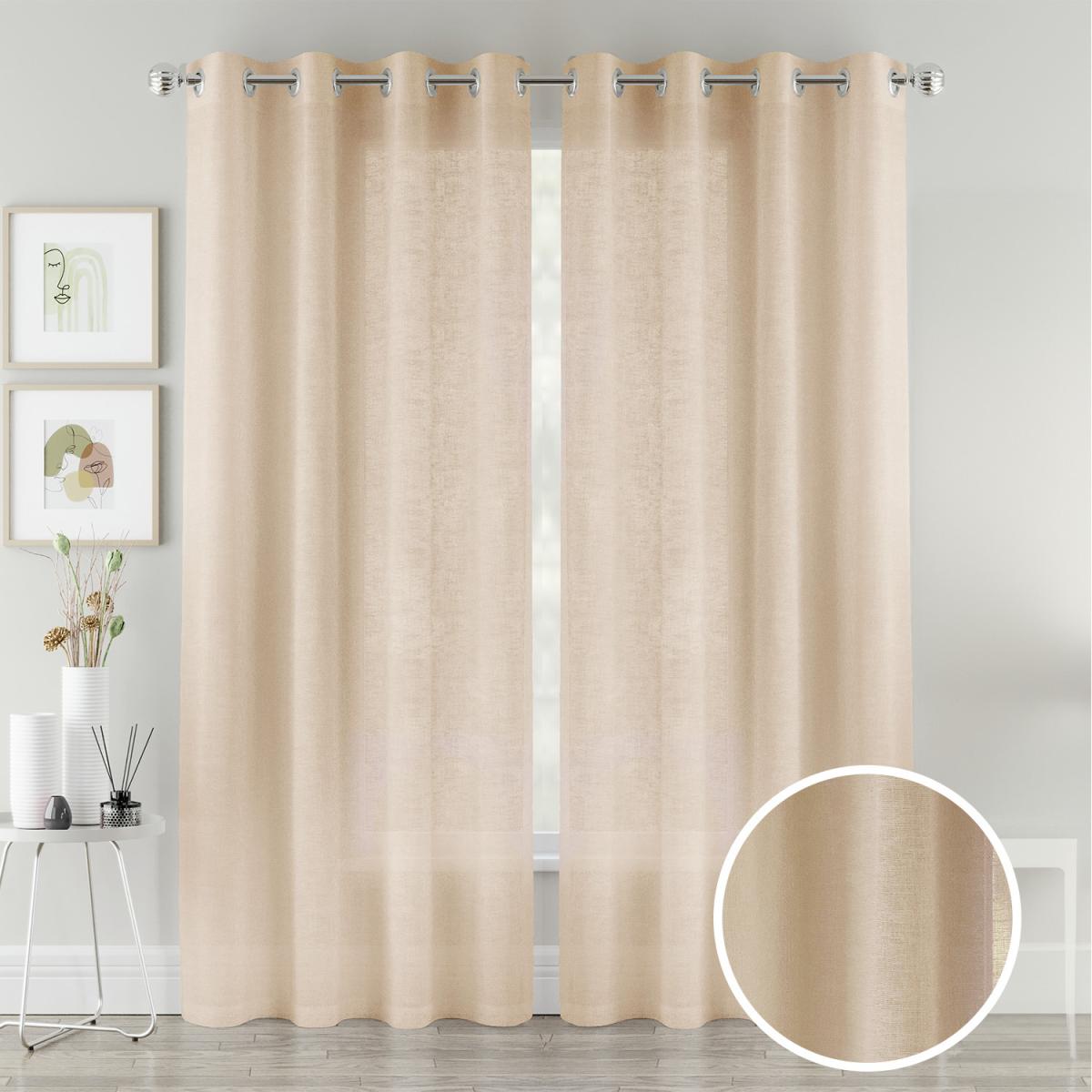 Pair of Plain Eyelet Header Sheer Linen-Look Voile Panels - Natural / 183cm