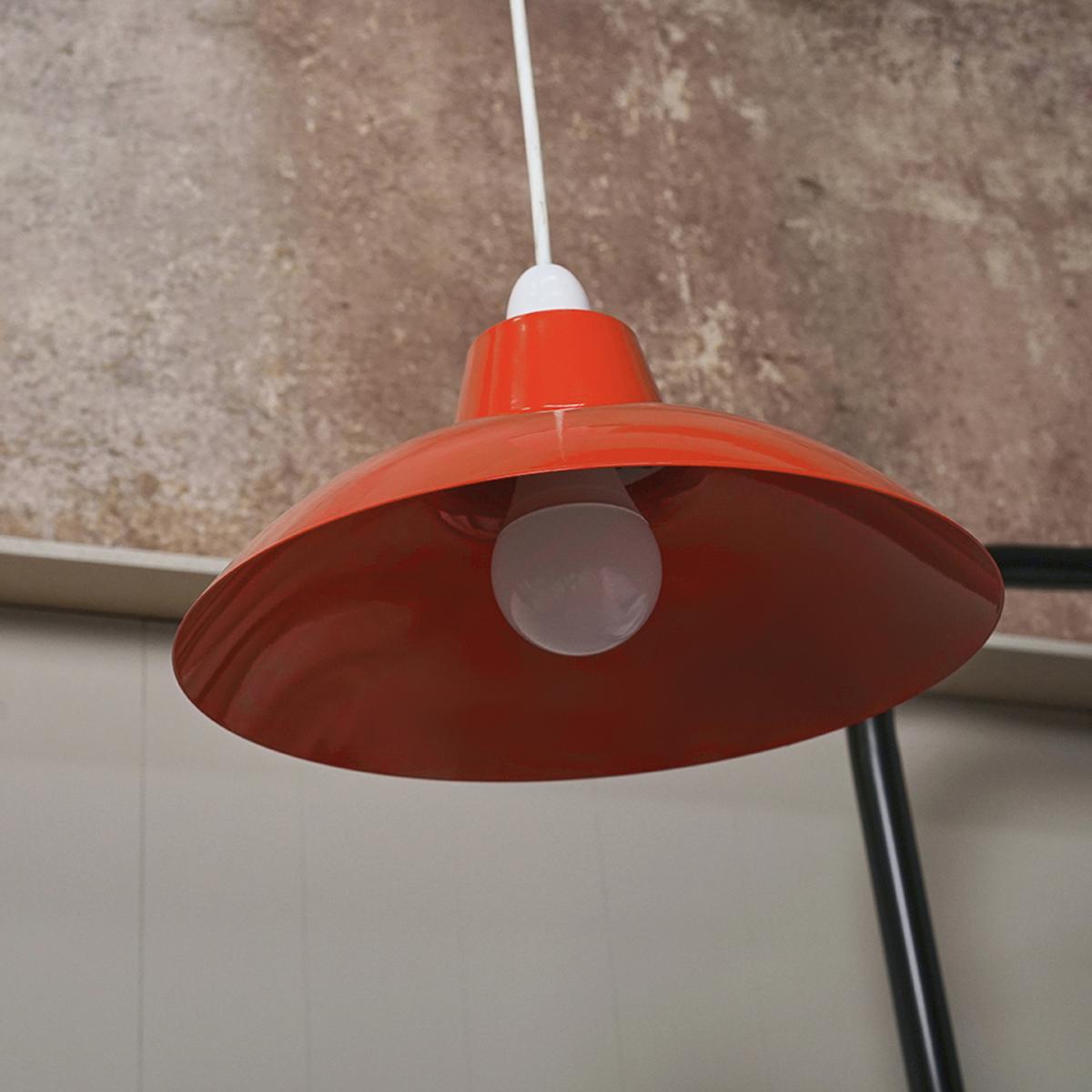 I love these retro-style red metal pendants for their bold colour and clean, vintage-inspired shape. They work particularly well in eclectic or industrial interiors, adding a pop of colour against neutral palettes or complementing exposed bricks and raw materials. Practical styling tips include grouping them at different heights over a kitchen island or dining table to create visual interest, or using them in a modern loft or a mid-century inspired space. Keep the surrounding decor simple to let the vibrant shades and sleek lines stand out, ensuring the look remains fresh and cohesive.
