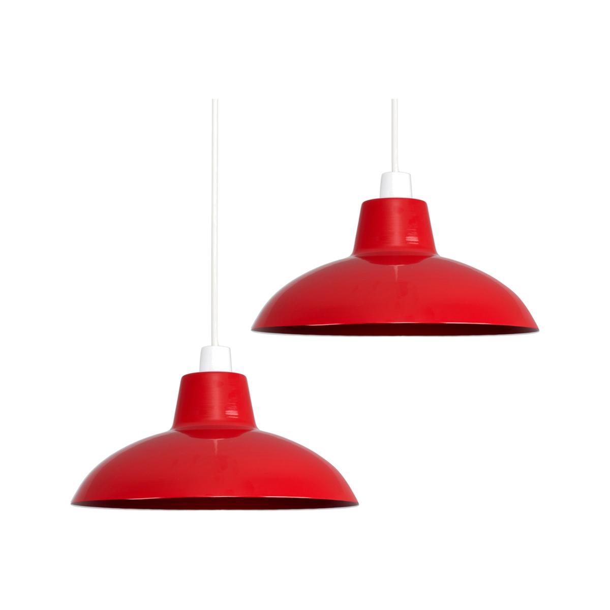 Pair Of Retro Style Red Metal Easy Fit Ceiling Pendant Light Shades - Red