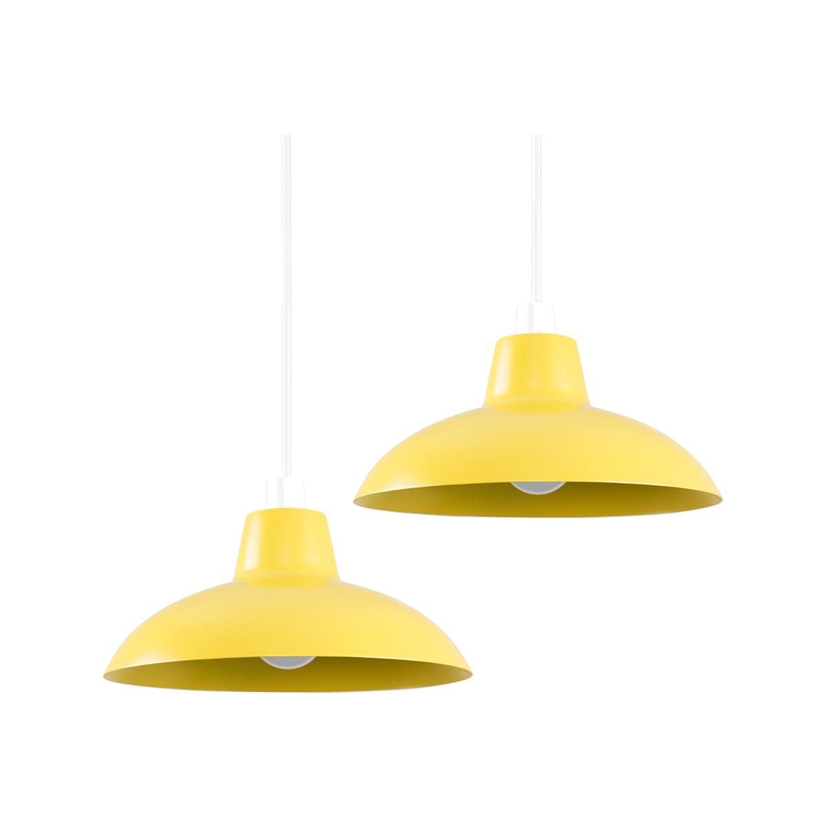 Pair Of Retro Style Yellow Metal Easy Fit Ceiling Pendant Light Shades - Yellow