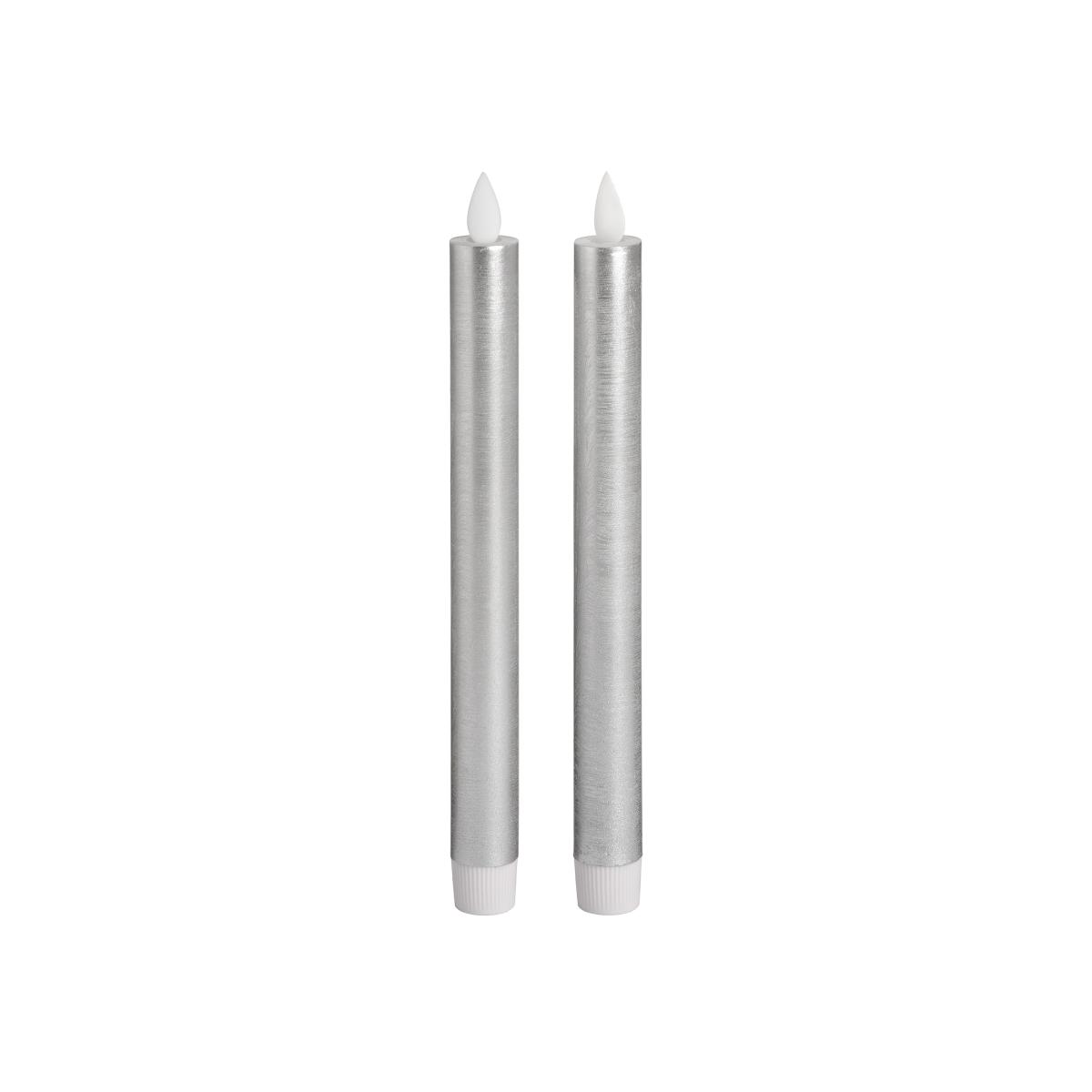 Pair Of Silver Luxe Flickering Flame LED Wax Dinner Candles - White