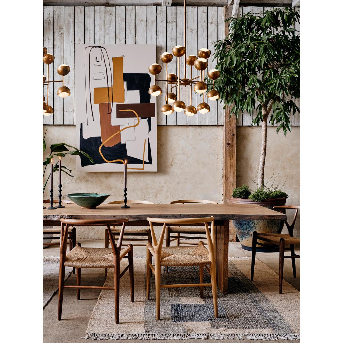 I’m a fan of these Sitwell chairs for their clean lines and warm walnut finish - the woven seat adds texture while staying comfortable for long dinners. They sit equally well in Scandi-inspired kitchens, mid-century living areas or a more rustic, modern farmhouse setting. To style, team them with a light oak or marble-topped table and layer in a neutral jute rug underneath to ground the space. Add simple linen cushions or a throw over the back for extra comfort, and mix in metal-rimmed glassware or matt ceramic tableware to keep the overall look relaxed but considered.