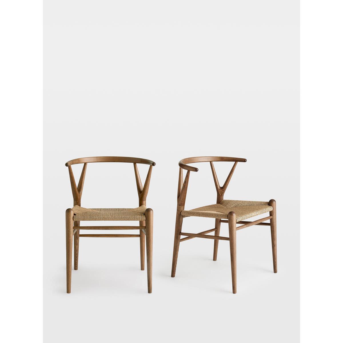 Referencing the seating styles at Little Beach House Barcelona,Sitwell is our modern take on mid-century dining chairs. Handmadein Italy, the chairs have a curved back with a rope cord seat - aunique seating option for design-led homes. Solid ash dining chairs. Walnut stain. Set of two. Handmade in Italy. Rope cord seat. Wishbone leg detail. Inspired by Little Beach House Barcelona.