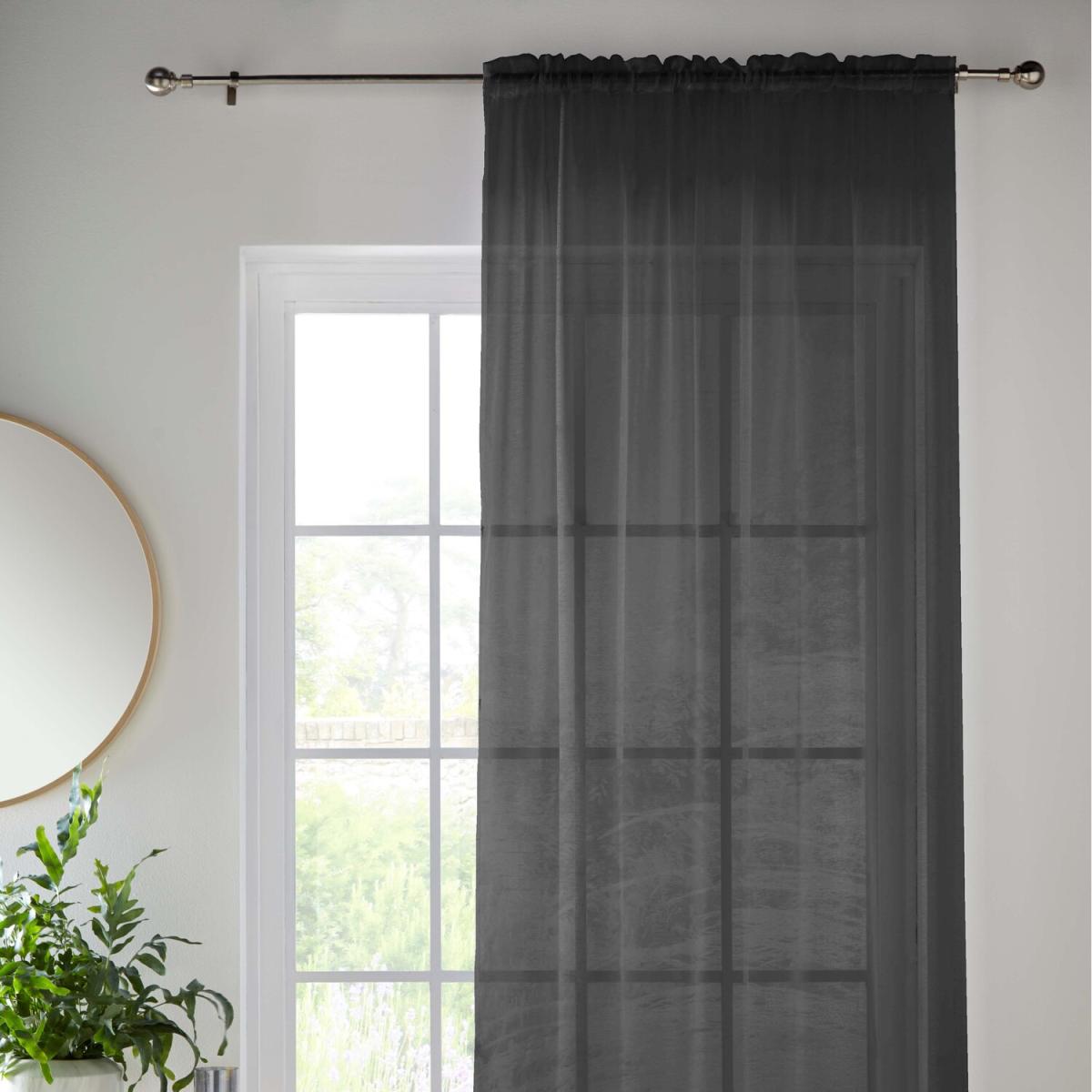 Pair of Slot Top Sheer Plain Woven Voile Curtain Panels - Black / 137cm