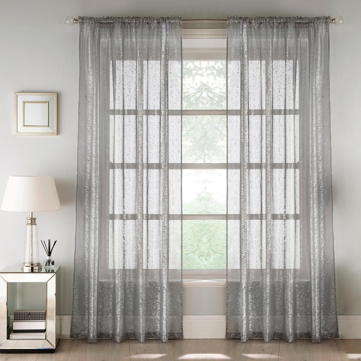 Pair of Slot Top Sheer Voile Panels with Metallic Shimmer Print - Grey / 137cm