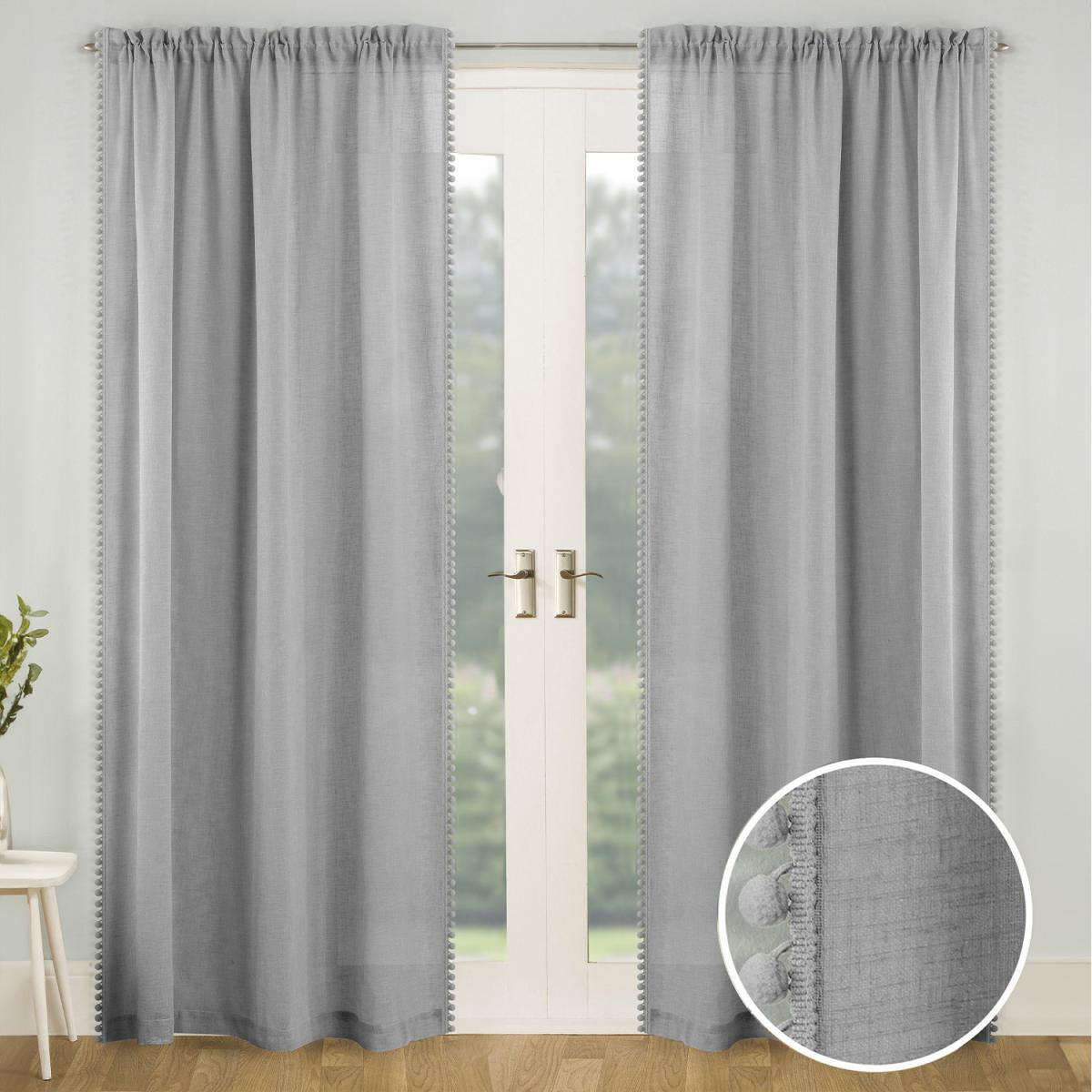 Our "Tahiti" Pom Pom Single Panel is designed with a convenient rod pocket header, ensuring a hassle-free installation process. Simply slide your curtain rod through the pocket, and you're ready to transform your space with the allure of nature. No need for additional accessories or complicated setups. Crafted from high-quality linen look fabric, this curtain panel not only radiates an air of luxury but also offers the resilience and endurance every homeowner seeks. The linen look fabric gently filters sunlight, casting a warm and inviting glow into your room while keeping unwelcome onlookers at bay.