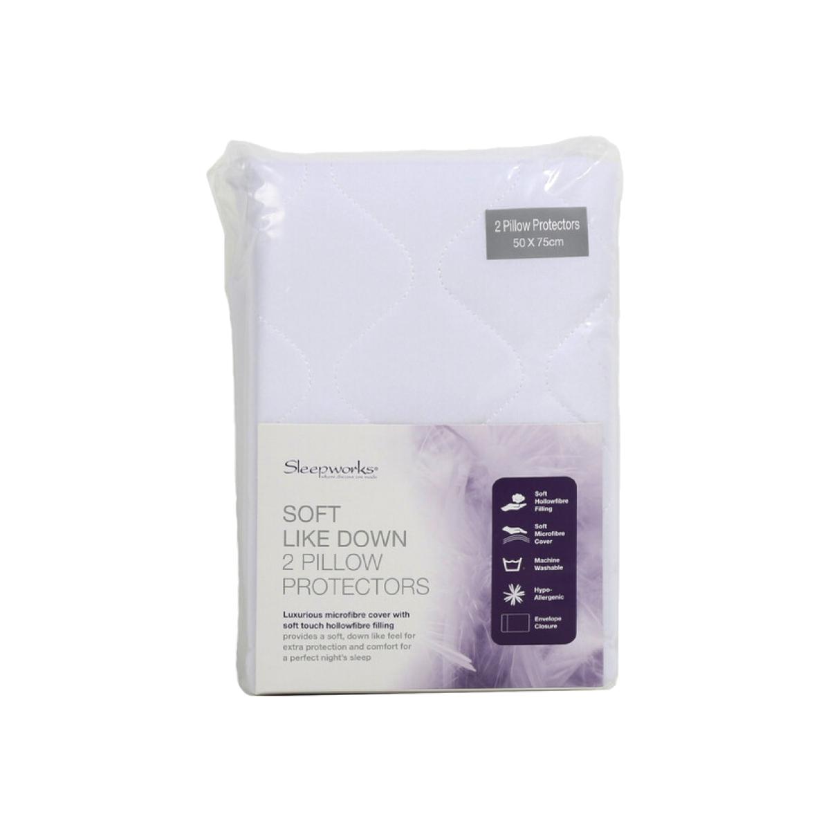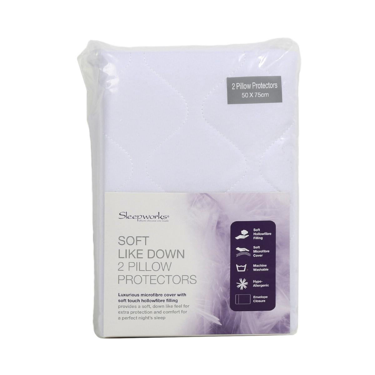 Protect your pillows to keep them fresh and good-as-new with this Pair of Soft Like Down Pillow Protectors. The soft microfibre outer cover plus soft polyester filling gives you a comfortable place to lay your head that feels just like real down. The covers have an envelope opening to completely wrap around your pillow and are hypo-allergenic for convenience. They're also machine washable to make cleaning quick and easy.