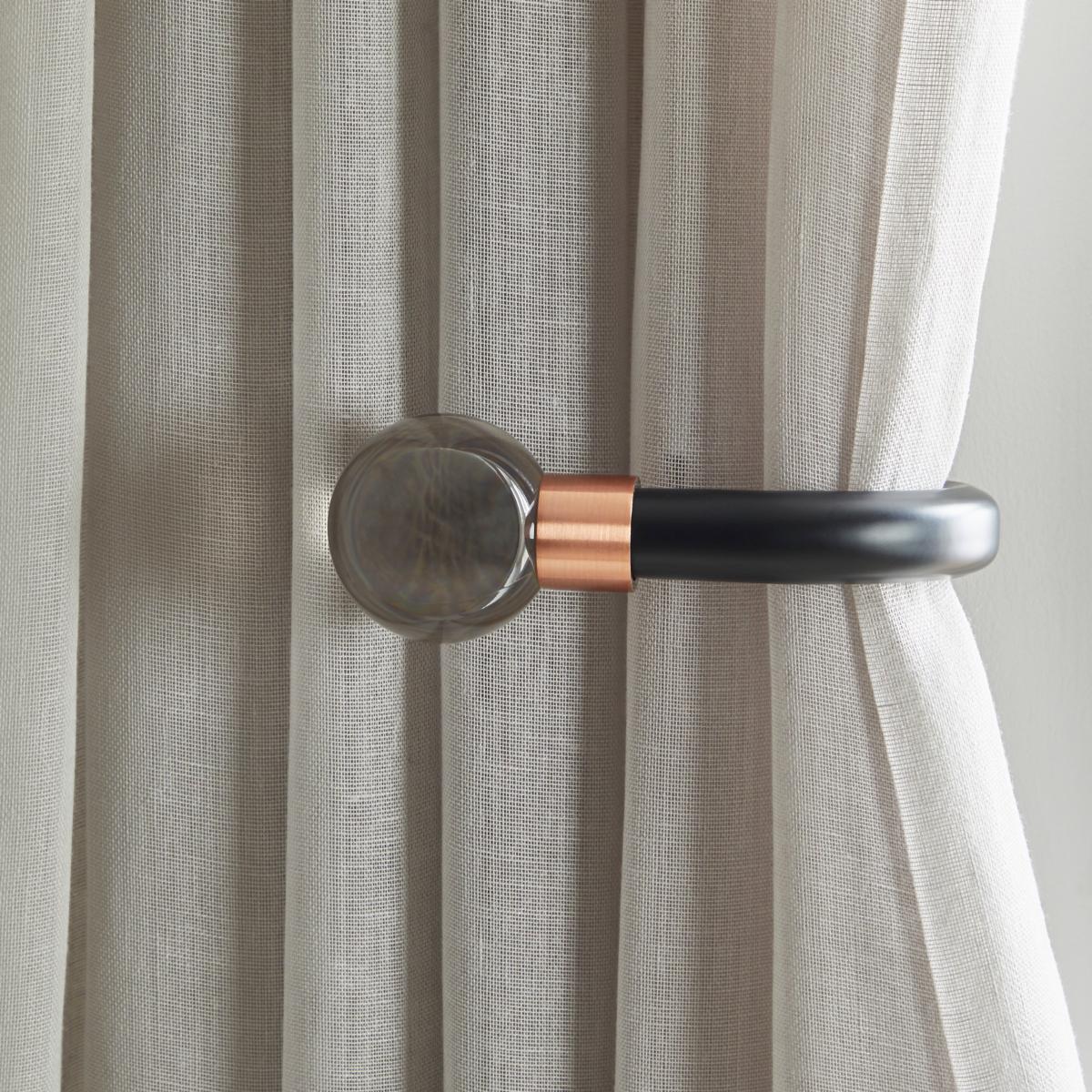 Pair of Suva Smoked-Glass Metal Holdbacks Black and Brown