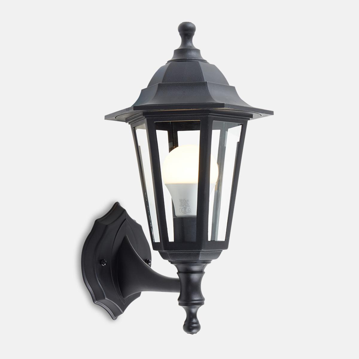 Pair Of Traditional Style Black Outdoor Security IP44 Rated Wall Light Lanterns - Black