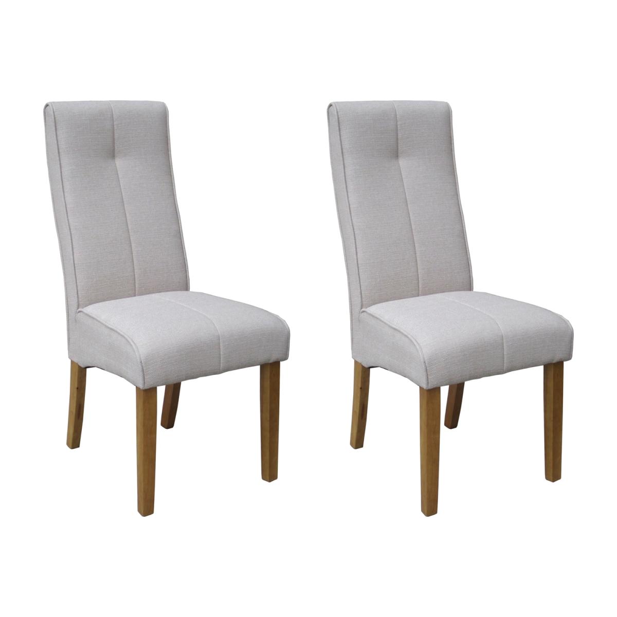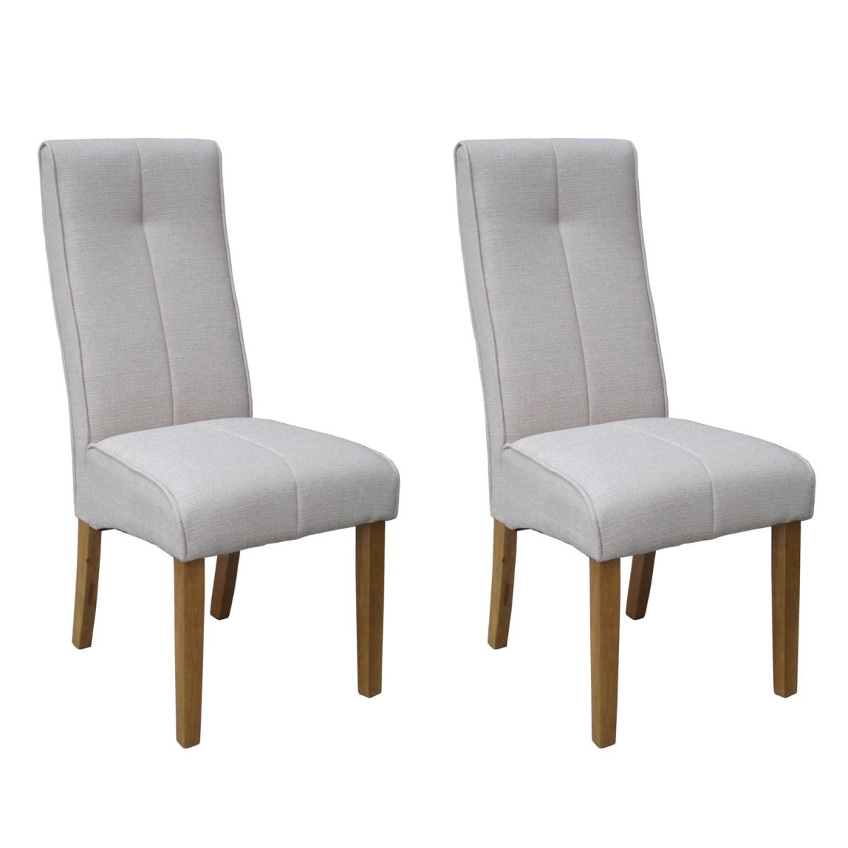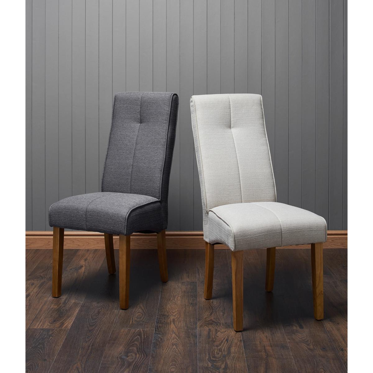 A trendy and stylish addition to your dining room, this Pair of Verona Dining Chairs are constructed with durable rubberwood legs and upholstered in textured linen-effect fabric with stitched detail. Featuring arched high backs and a padded seat for great comfort, these dining chairs are perfect for everyday use at mealtimes and entertaining guests. Finished in contemporary tones, these chairs will lend themselves to most dining rooms and tables and bring a fashionable seating solution to the hub of your home.