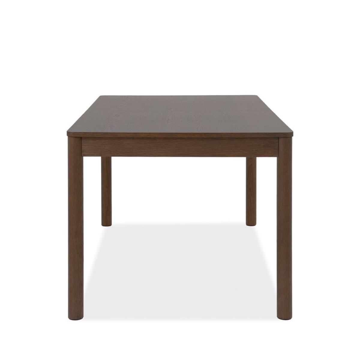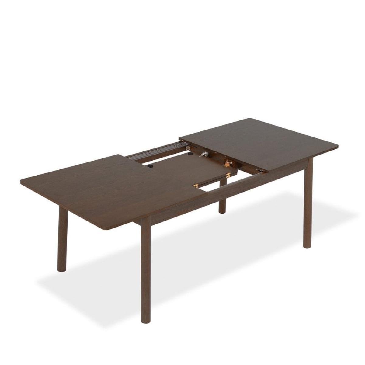 I’m a fan of this extendable walnut table for its clean lines and warm smoked finish - it slots effortlessly into modern Scandi or mid-century schemes without feeling too heavy. Its simple frame makes it ideal for both everyday family meals and larger dinner parties once extended. To style, pair it with slim, upholstered chairs in a neutral tone and add a low-profile runner or a cluster of ceramic vases in muted greens to break up the dark wood. Above, hang a minimalist pendant light to keep the look uncluttered, and if space allows, mirror the table’s length with a narrow console or sideboard against one wall.