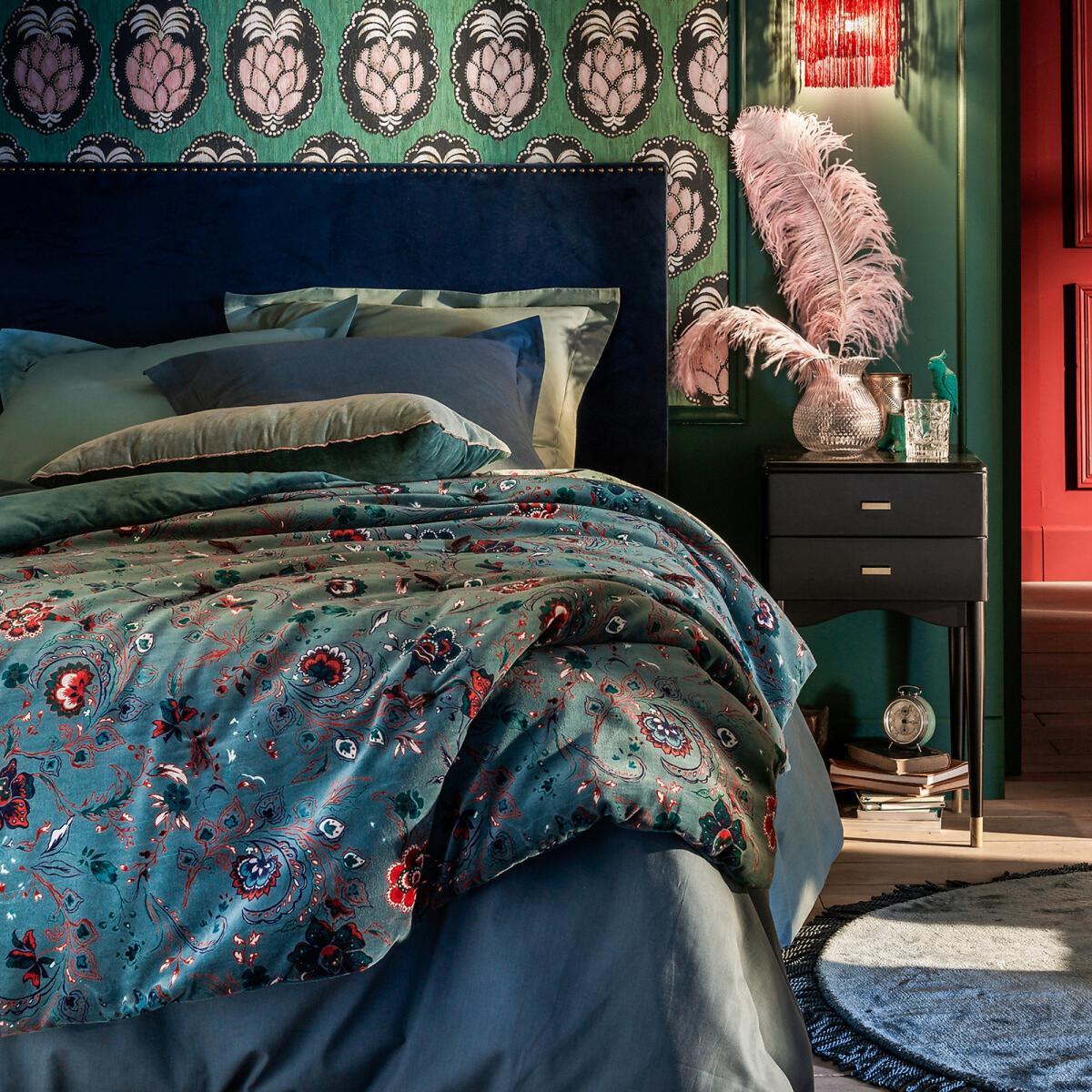 The Paisley patterned velvet quilt. The floral pattern on this velvet quilt will add a charming touch to your bedroom decor.