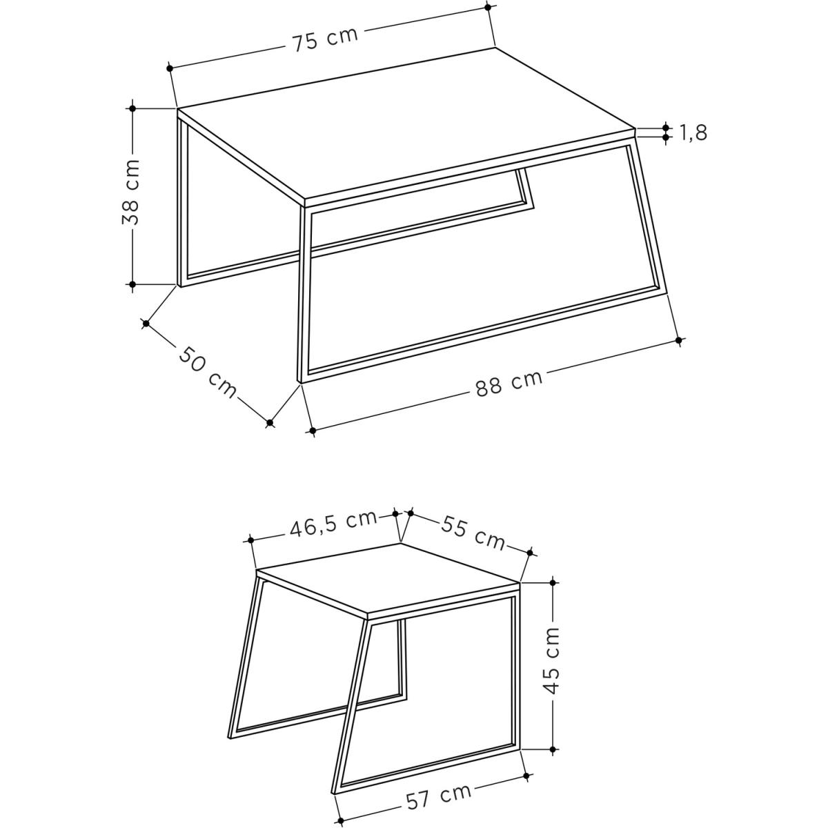 Introducing our versatile 2-piece coffee table, perfect for enhancing your living room decor. Use it as an end table, side table, display unit, or even a plant stand. With its hackable design, you can customize it to suit your needs. Made with high-quality engineered wood and a protective melamine finish, it's easy to clean and maintain. The metal frame provides stability and durability. The larger part measures 88 x 50 x 38 cm, and the smaller part measures 57 x 55 x 45 cm. It's perfect for small spaces and creating a modern look. Available in multiple colors to match your existing decor. Easy assembly with clear instructions. Upgrade your living room today with our stylish 2-piece coffee table!