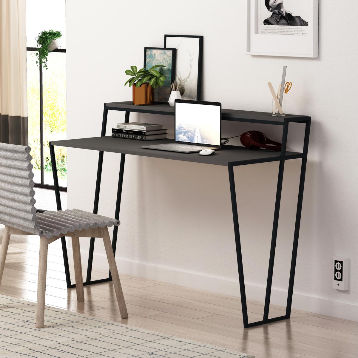 Pal Modern Study Desk With Monitor Stand - Anthracite Grey