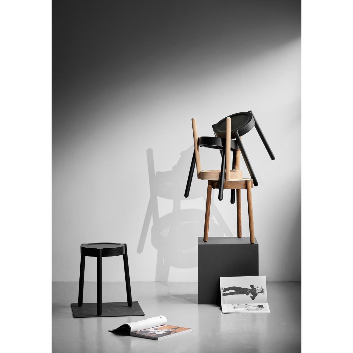 This stool gives pride of place to the wooden material: It's made from oak, which is a tactile and warming material. The Pal stool stands out for the original position of its three legs, which are fixed to the outer edge of the seat. As a result, the silhouette of the stool is lightweight, almost floating. A large part of this stool's character is forged by the relationship between the natural material and the handcrafted techniques which make each stool unique. The Pal stool is lightweight, stackable and easy to store.