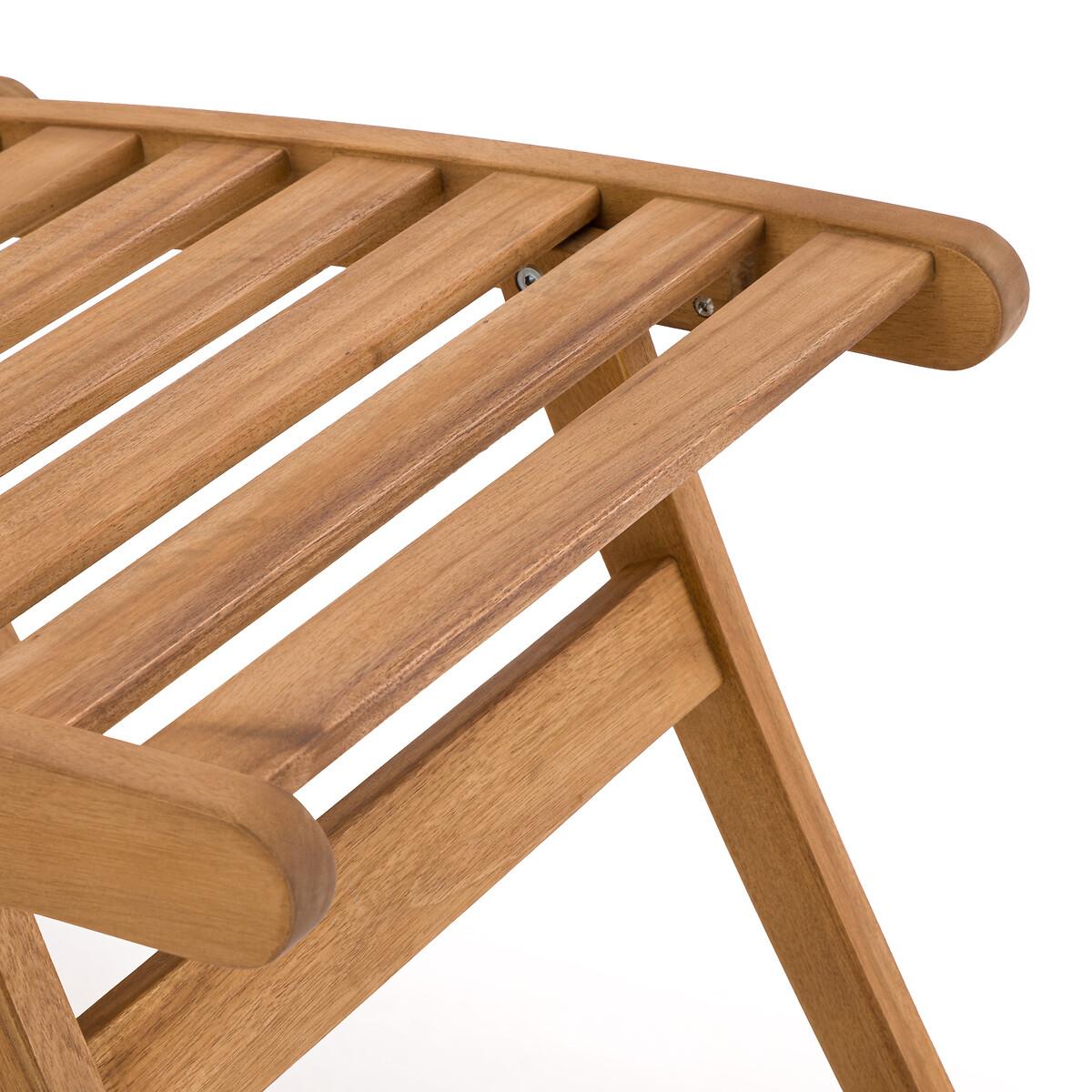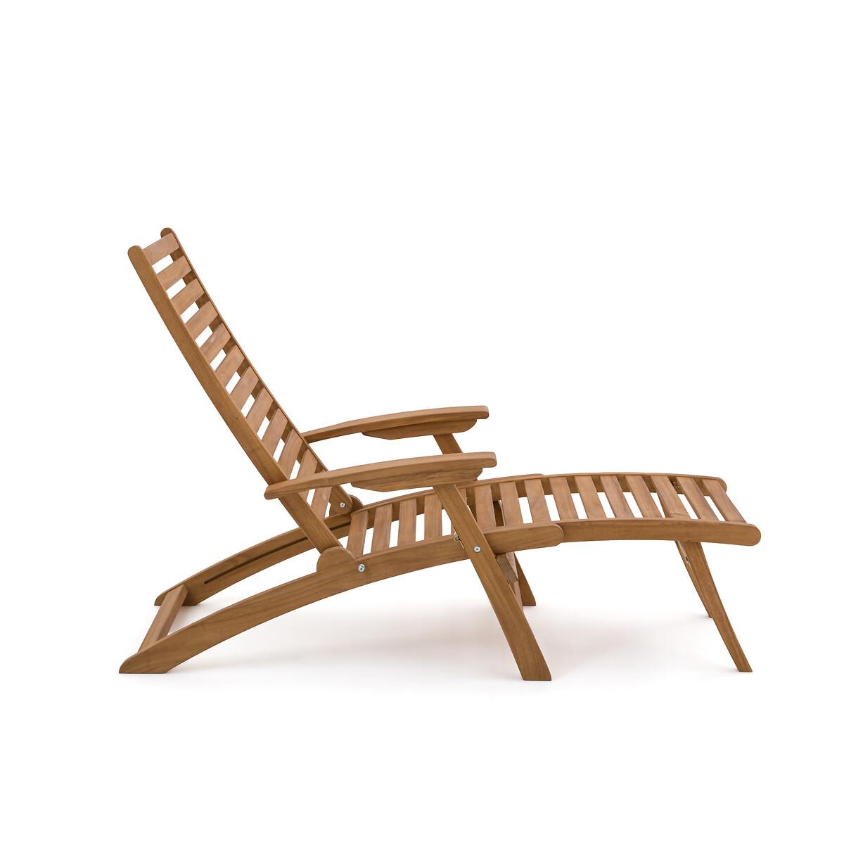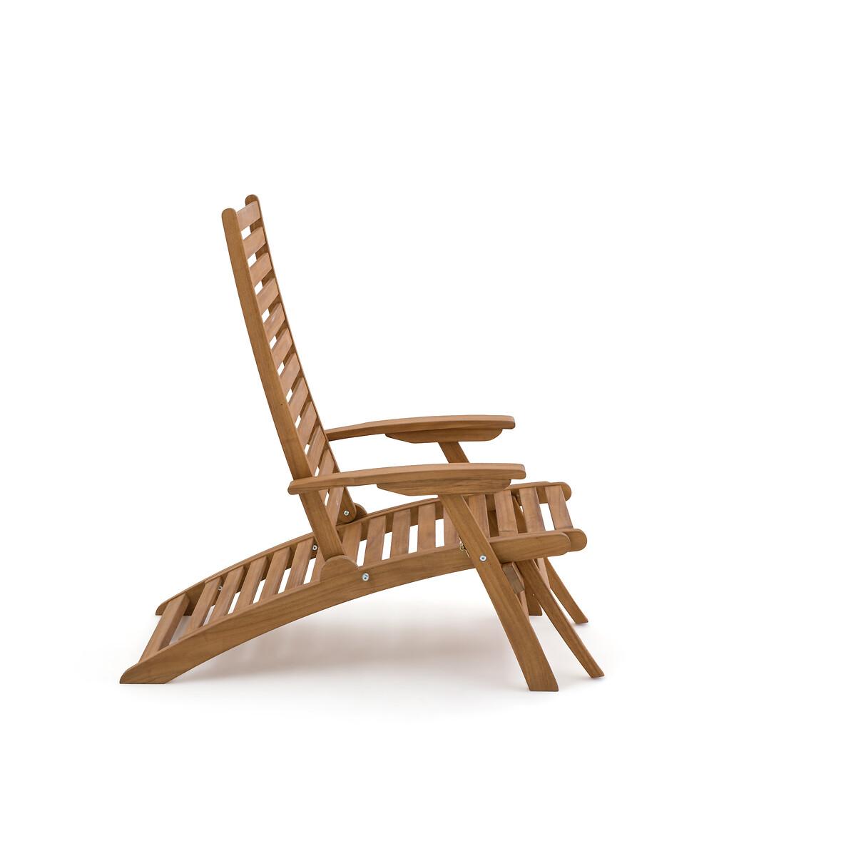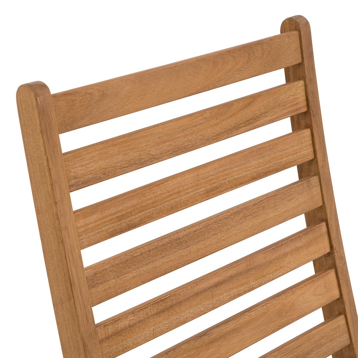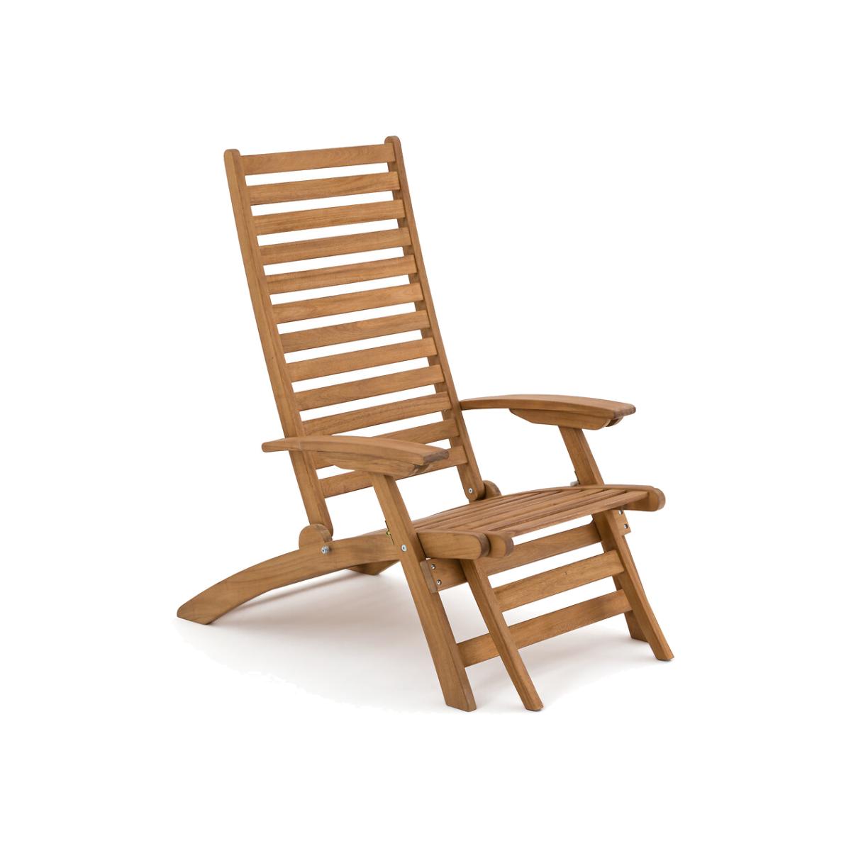 An invitation to relax. Designed in acacia, this garden armchair transforms into a lounge chair with its extendable then retractable seat. Its 3-position adjustable backrest offers all the comfort to fully enjoy sunny days. Folding for easy storage. Product Details • In FSC® certified acacia, oiled finish • Back and seat in 4.4cm openwork slats • Back adjustable in 3 positions • Retractable footrest under the seat • Folding • Max weight 100 kg Quality Info • Acacia is a wood that offers good mechanical properties (good resistance to insects and fungi) and is resistant to bad weather (alternation of dry and humid periods).Dimensions • Width: 62cm • Height: 107cm • Depth: 145cm • Weight: 12kgDelivery:. Sold pre-assembled. Note! Please check that all access points are large enough to accommodate your delivery (doors, stairs, lifts). • WOOD FROM SUSTAINABLY MANAGED FORESTS. FSC® certified wood comes from forests that are environmentally, socially and economically well managed. Dimensions and weight of parcel1 parcel • L143 x H18 x D66.5cm. 16kg