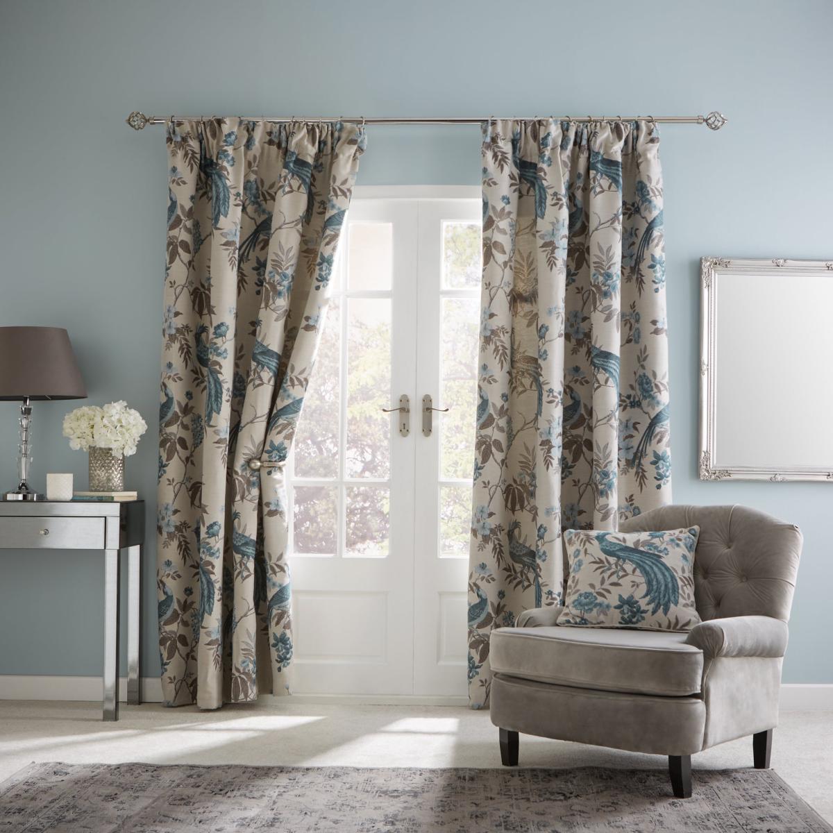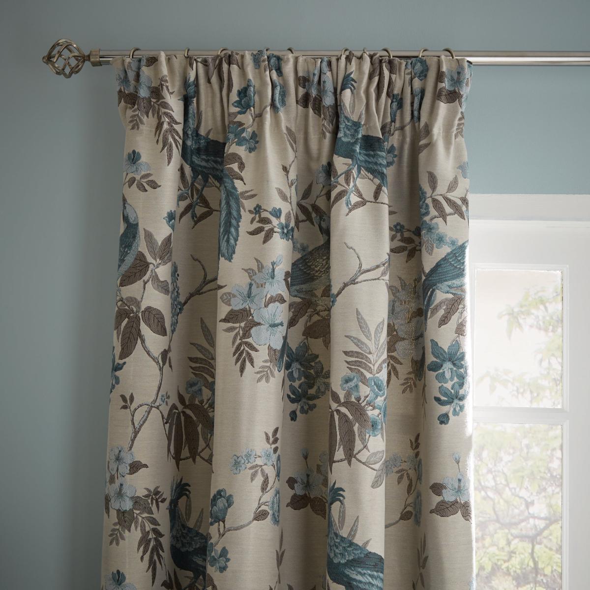 Fashioned from stunning jacquard fabric for an opulent appearance, these beautiful eyelet curtains are completed in a duck egg colourway and feature a lavish palace bird design. These curtains are styled with a traditional 3 inch pencil pleat header for a full and lavish drape. Perfect for bringing a luxurious finish to any room, these curtains effortlessly complement a wide range of decorative styles and are fully lined for improved insulation and privacy. Available in a variety of sizes to suit your needs and with a coordinating cushion available to purchase separately. Please note: these curtains are sold as a pair. Professional cleaning in Perchloroethylene or equivalent recommended.